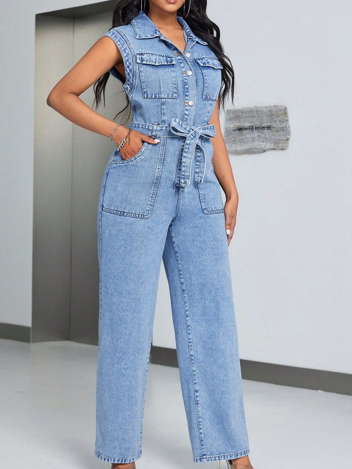 Indulge in the luxurious comfort and style of our Denim Jumpsuit. Crafted with soft, high-quality denim, this jumpsuit features convenient pockets and a tied half button design for added elegance. Elevate your wardrobe with this sophisticated and exclusive piece.