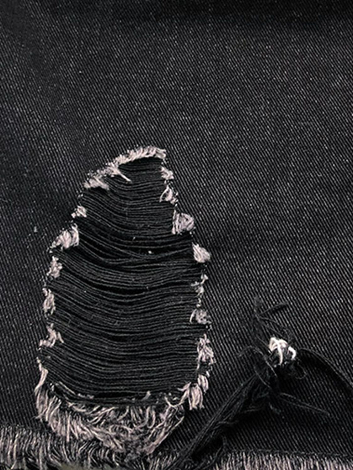 • Womens Jacket-Raw Hem Collared Neck Long Sleeve Denim Jacket