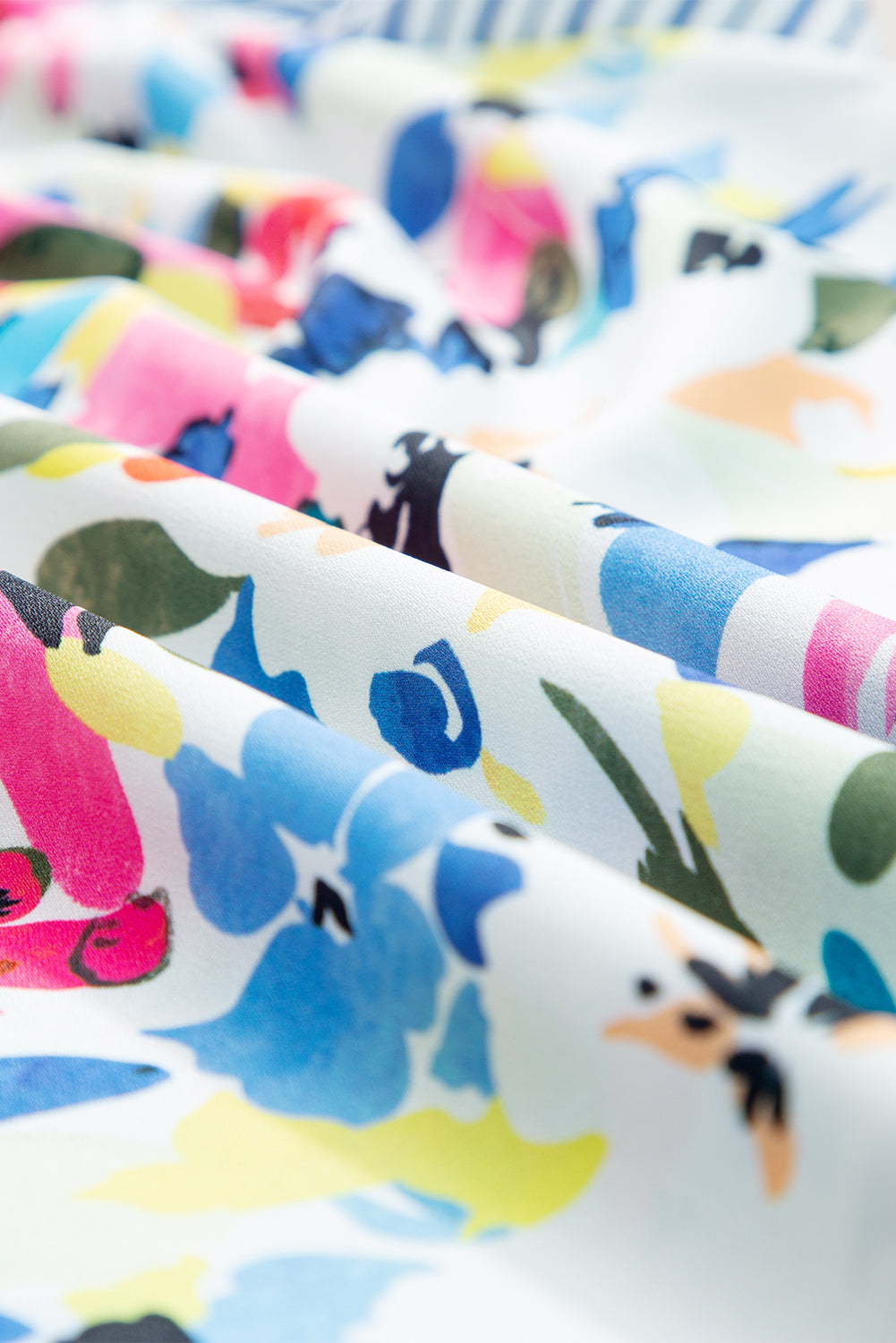 • Load image into Gallery viewer, Light Blue Floral Print Striped Ruffled Sleeve Blouse | Tops/Blouses & Shirts