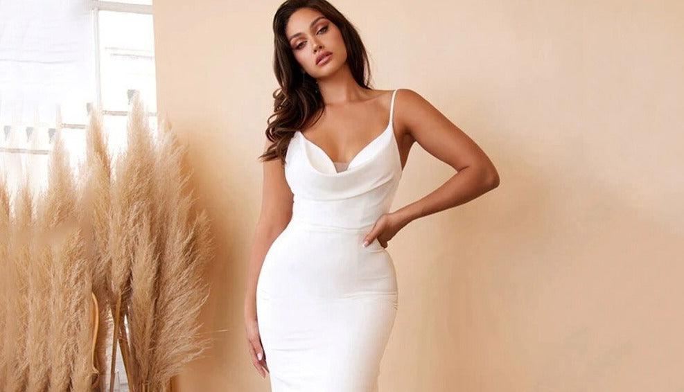 How it Works: This dress is designed to fit like a glove. Simply slip into the dress and adjust the spaghetti straps to your desired length. The built-in bra will provide the perfect amount of support and the natural waistline will give you a slimming silhouette.