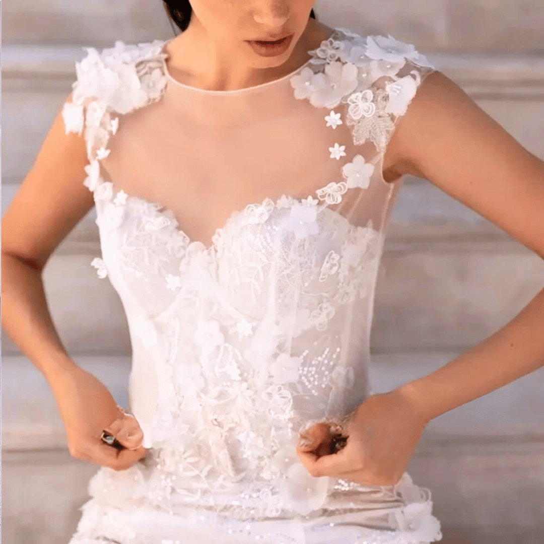 Get ready to make a splash with our breathtaking mermaid wedding dress! Adorned with stunning 3D lace and a flowing mermaid silhouette, this dress is perfect for any mermaid-at-heart. Feel like a true aquatic goddess on your special day.