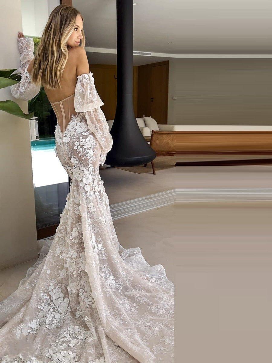 Mermaid Wedding Dress-Strapless Bridal Gown Puff Sleeves | Wedding Dresses