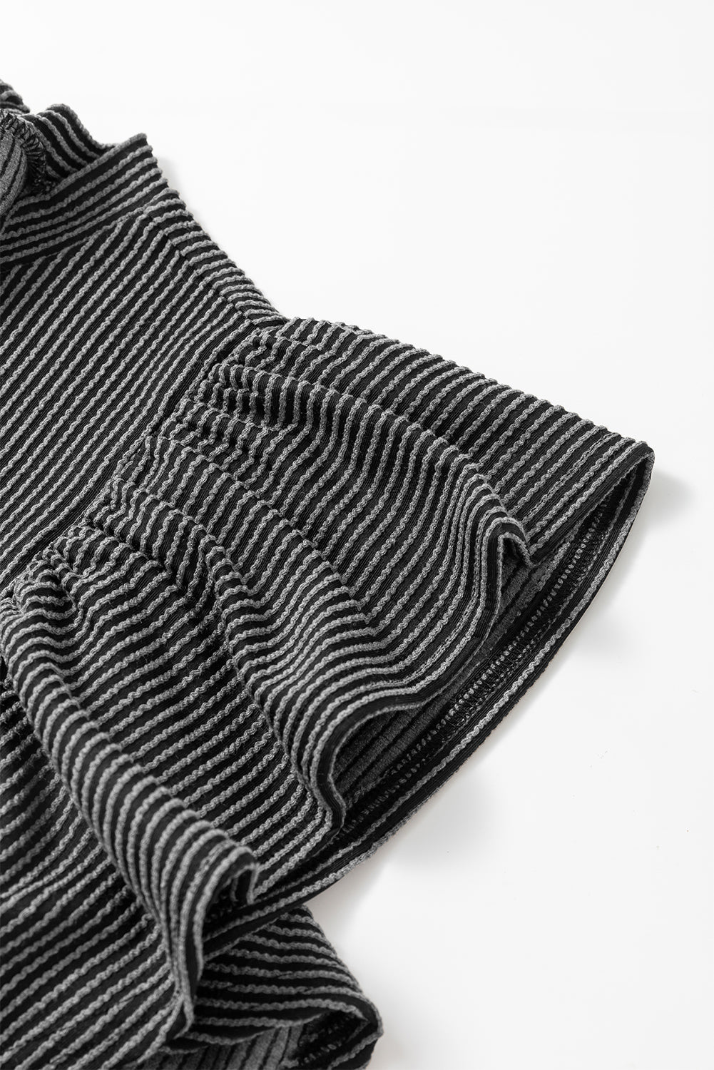 Mini Dress | Black Textured Ruffled Flutter Sleeve Dress