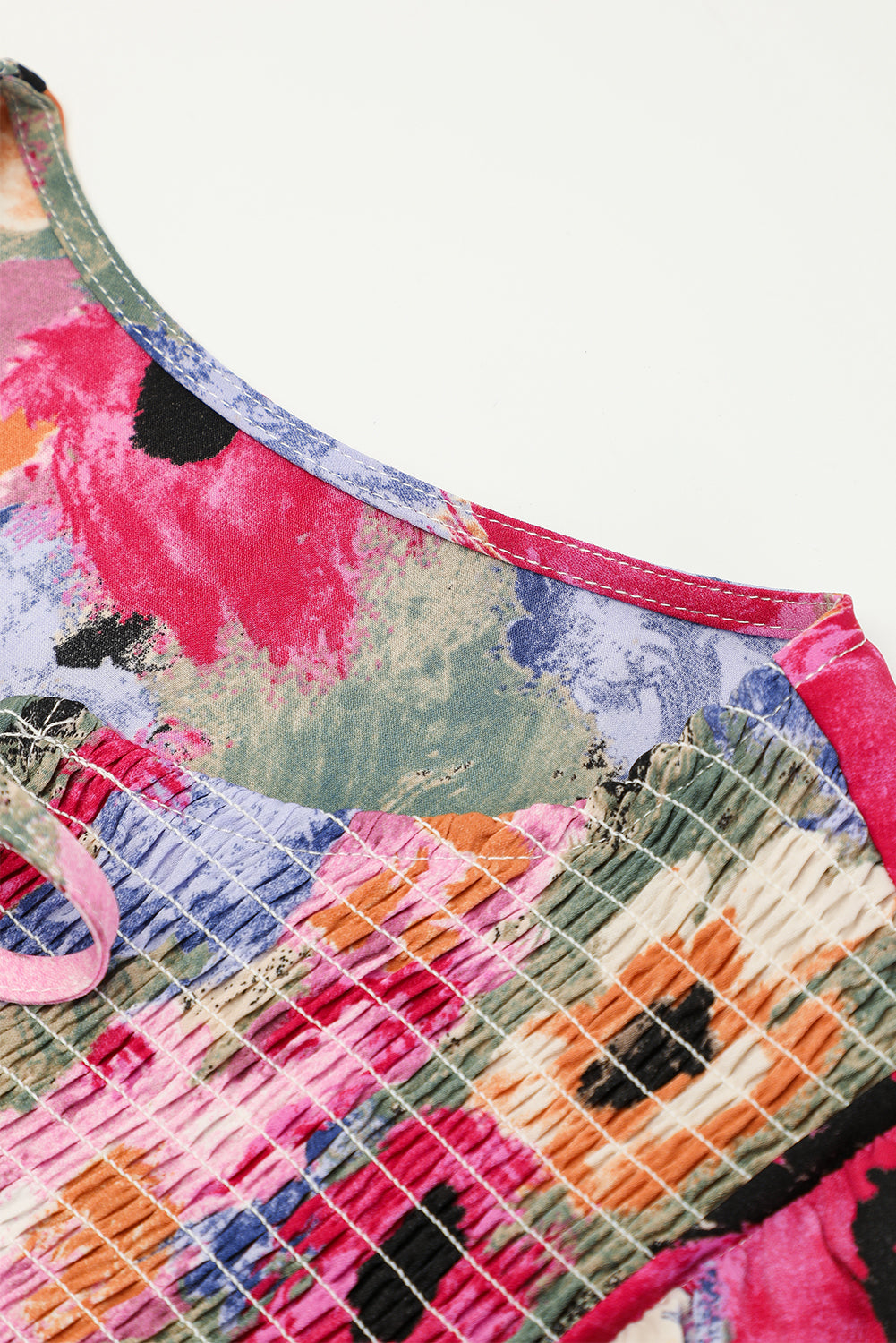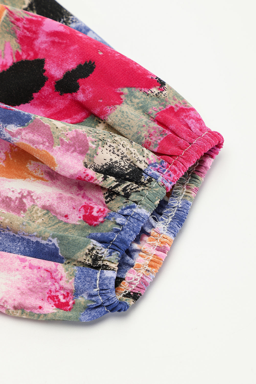 Multicolour Floral Tie Neck Bubble Sleeve Shift Dress