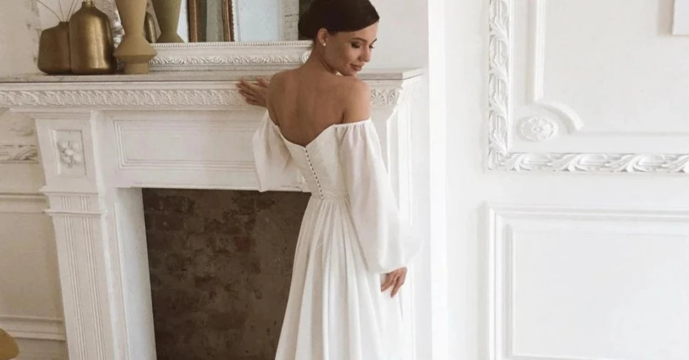 Off Shoulder Wedding Dress | Romantic Chiffon Bridal Gown