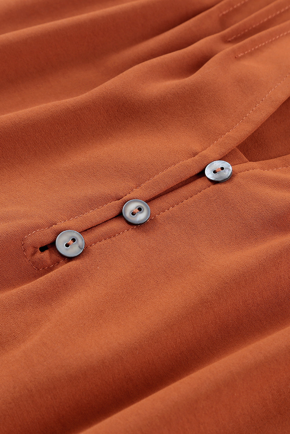 Orange Ruffled Pleated Buttoned V Neck Blouse