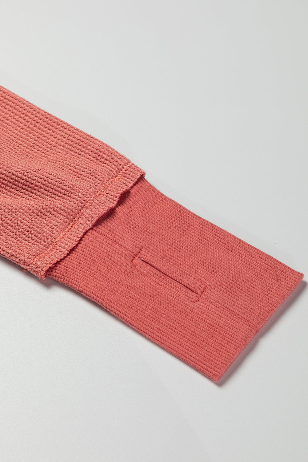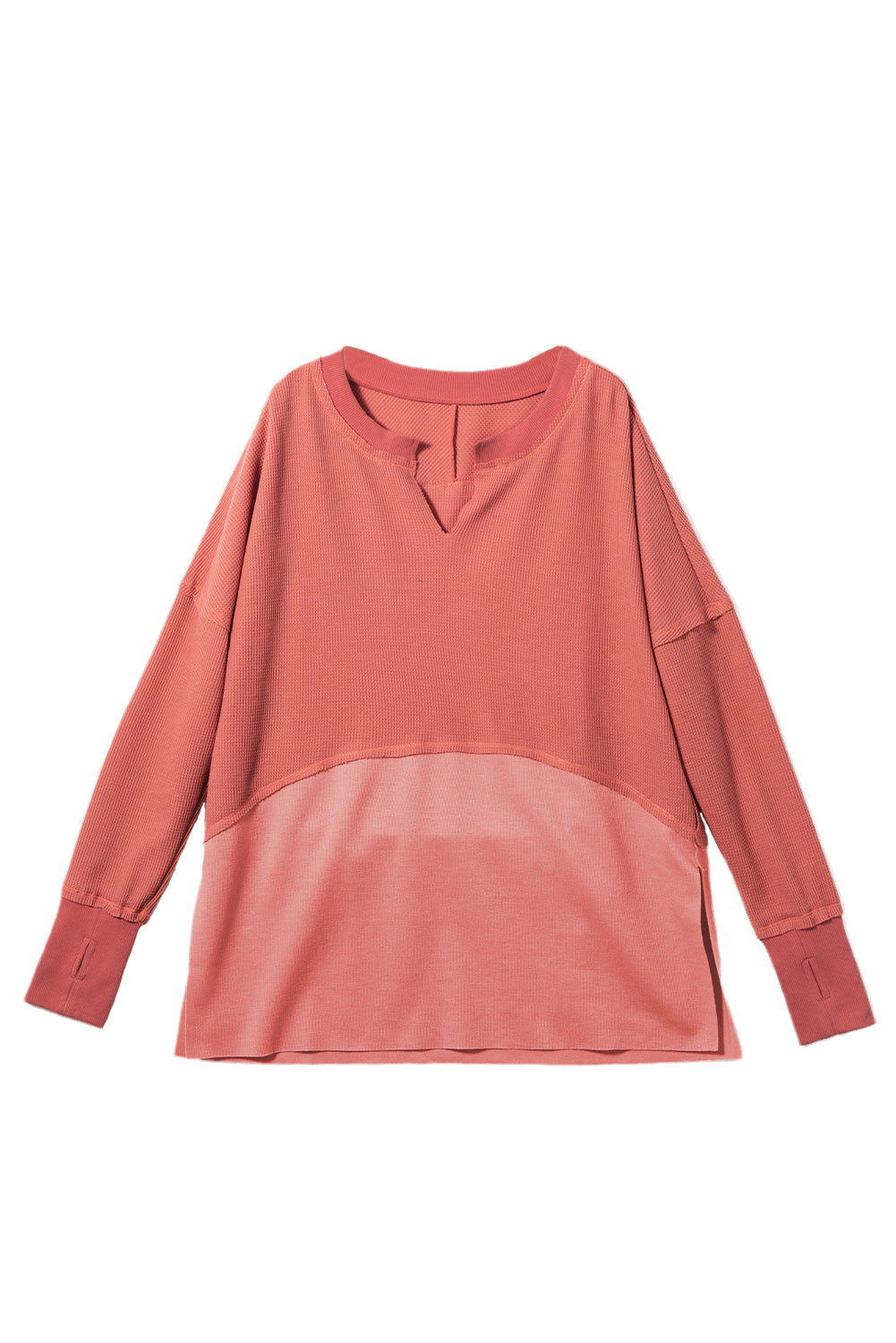 Patchwork Top | Mineral Red Exposed Seam Slit Neck Waffle Knit