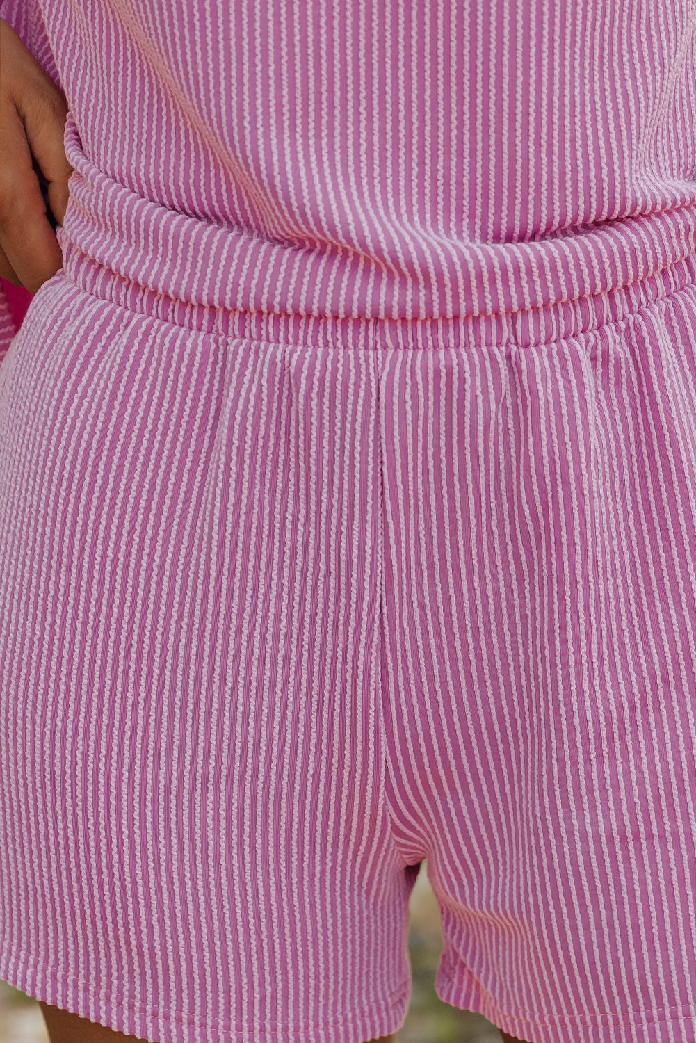 Phalaenopsis Ribbed Textured Knit Loose Fit Tee and Shorts Set | Two Piece Sets/Short Sets