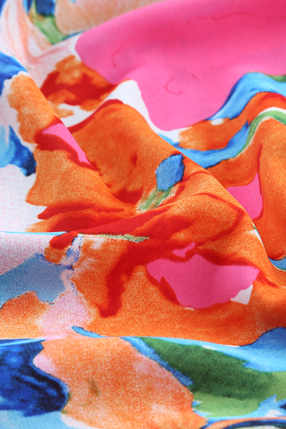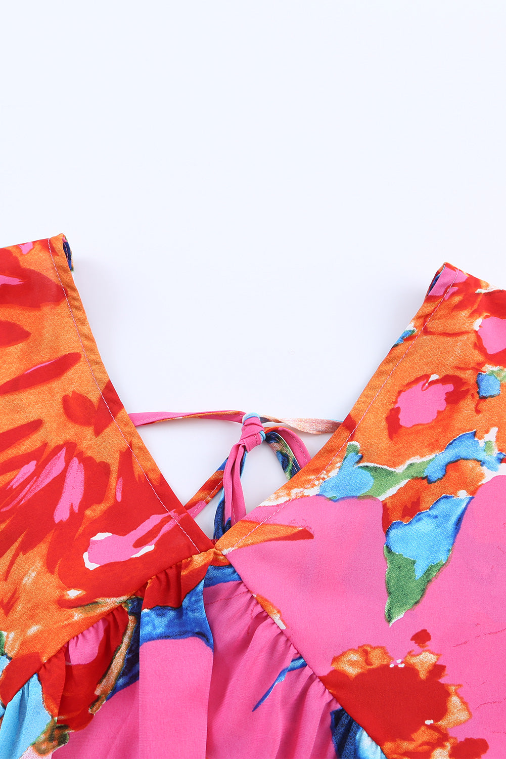 Pink Abstract Print V Neck Flutter Sleeve Blouse