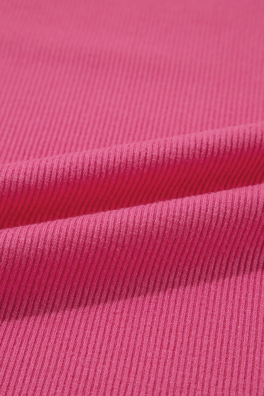 Pink Flower Patchwork Top | Ruffled Sleeve Ribbed Knit