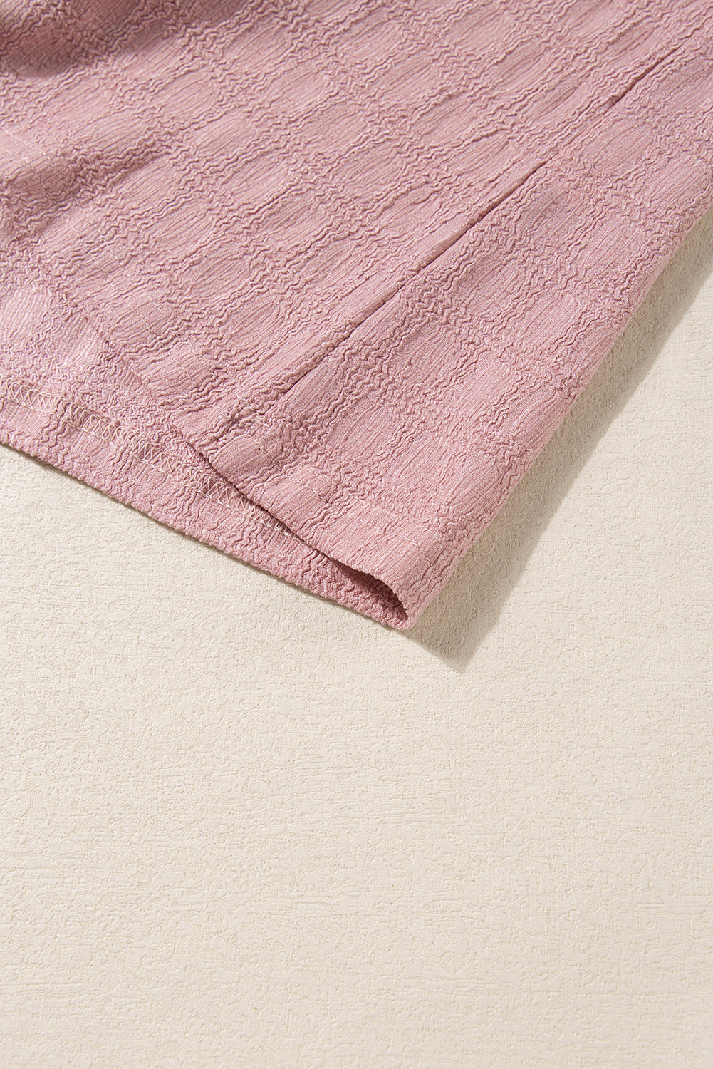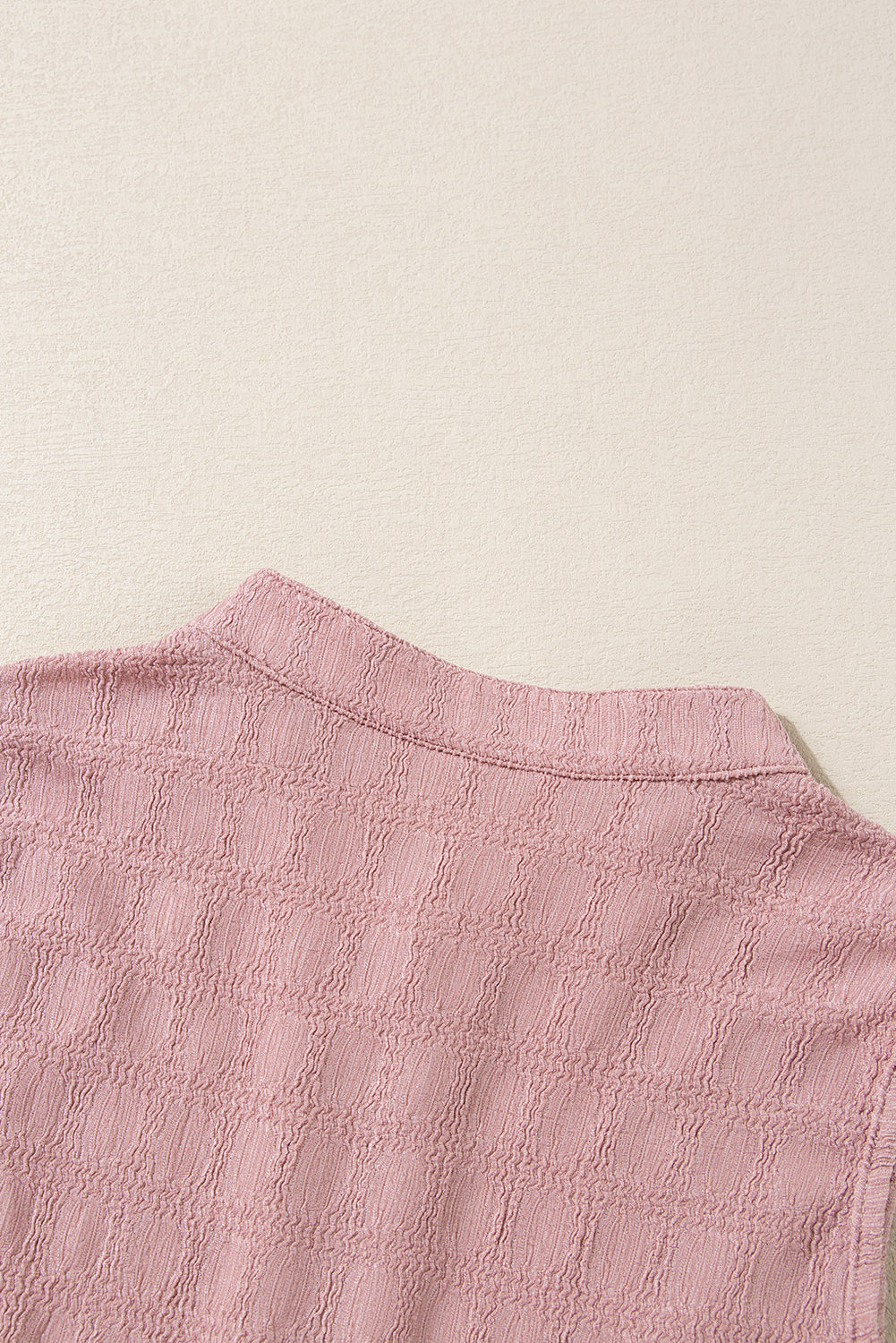 Pink Lattice Textured Split Neck Tank Top | Tops/Tank Tops