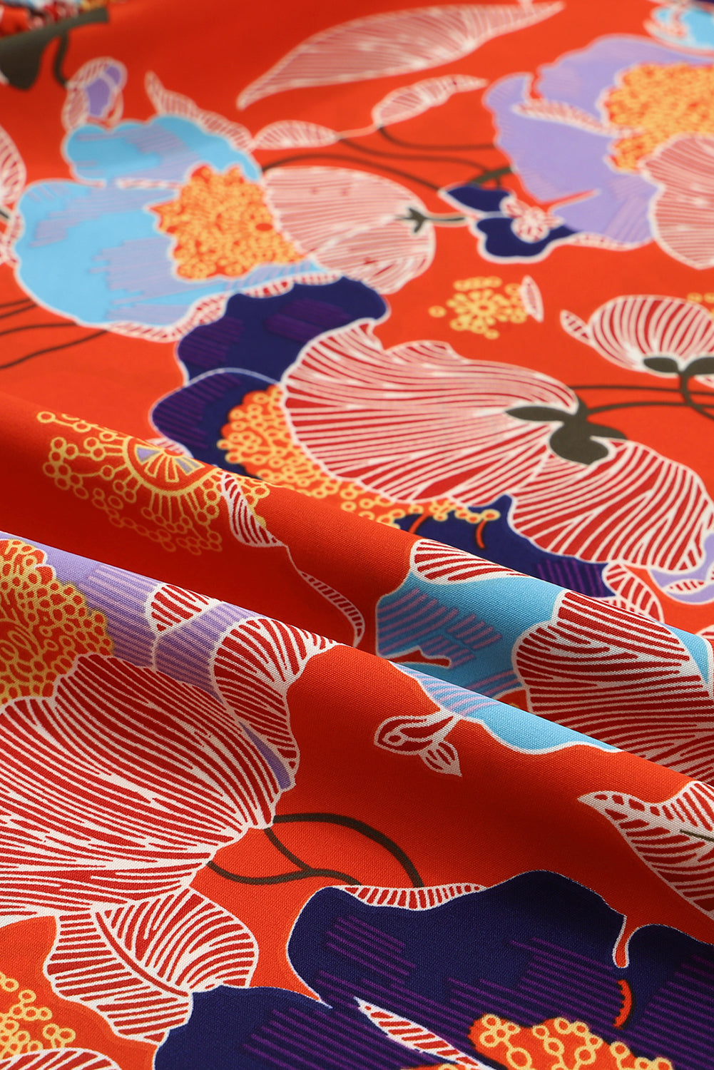 Puff Sleeve Blouse | Fiery Red Floral Print Ruffle