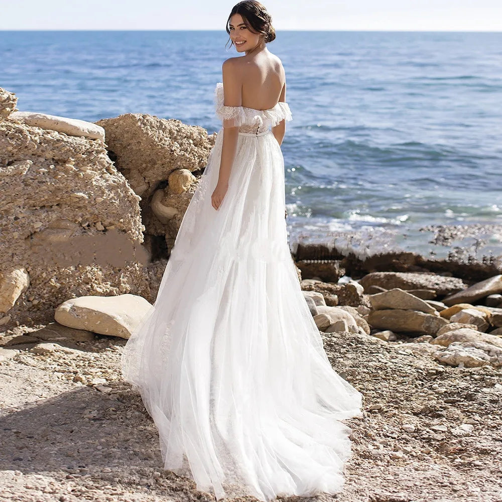 • Tailored Fit for All Body Types: We believe in inclusivity in fashion, which is why our diverse range of sizes ensures a tailored fit for an array of body types. No matter your shape or size, you can feel confident and beautiful in this lace beach wedding gown.