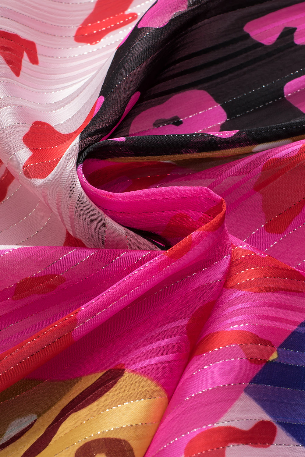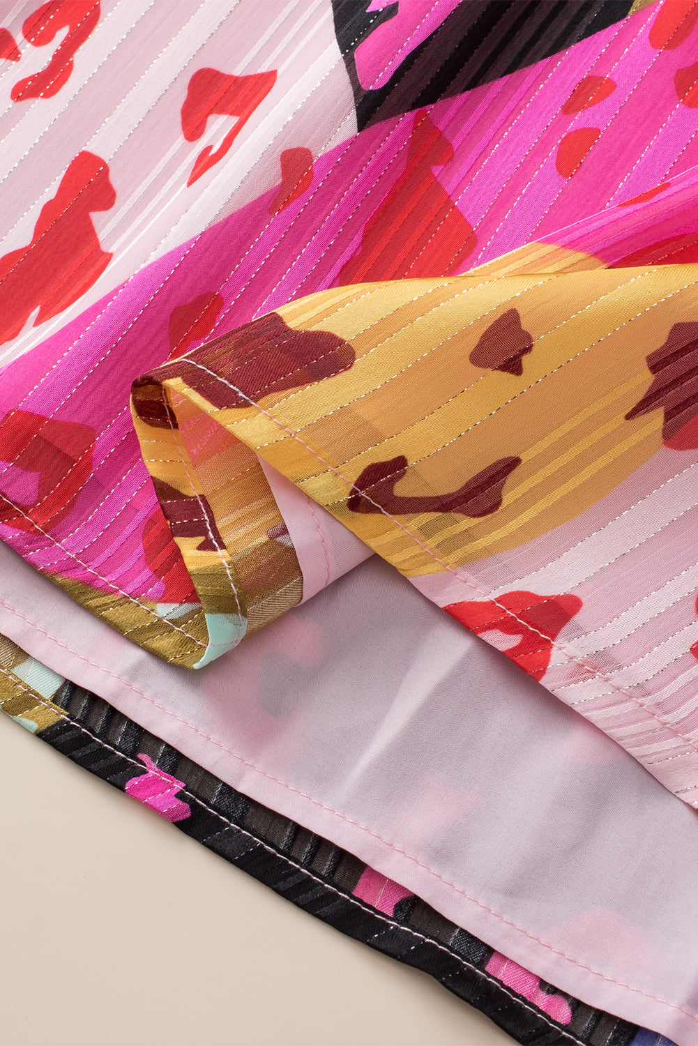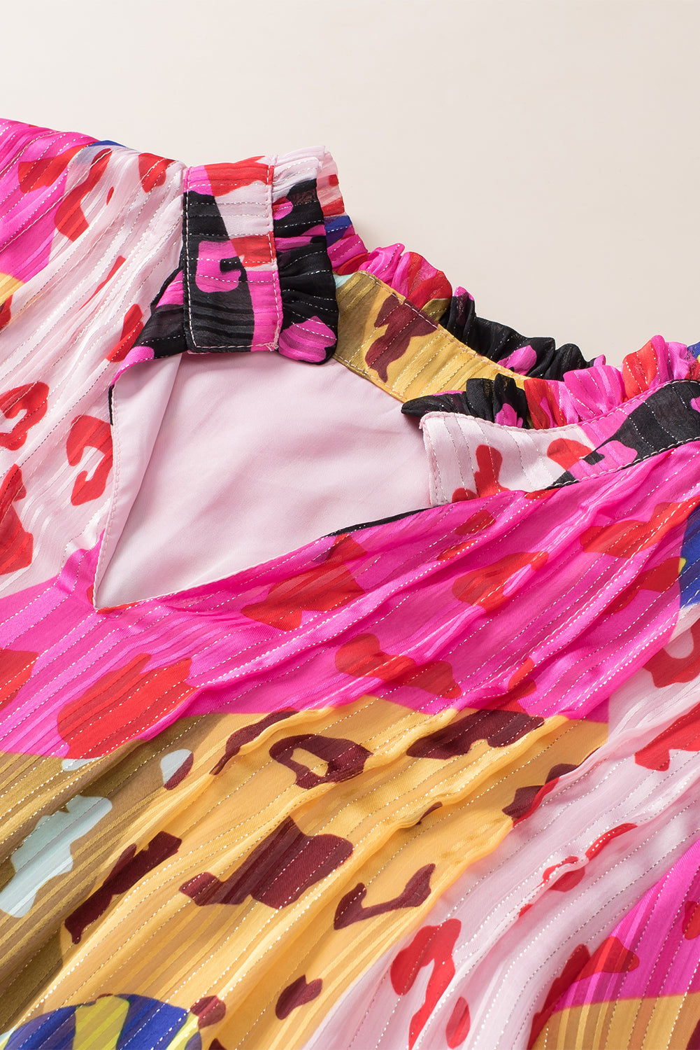 Rose Leopard Patchwork Print Pleated Blouse