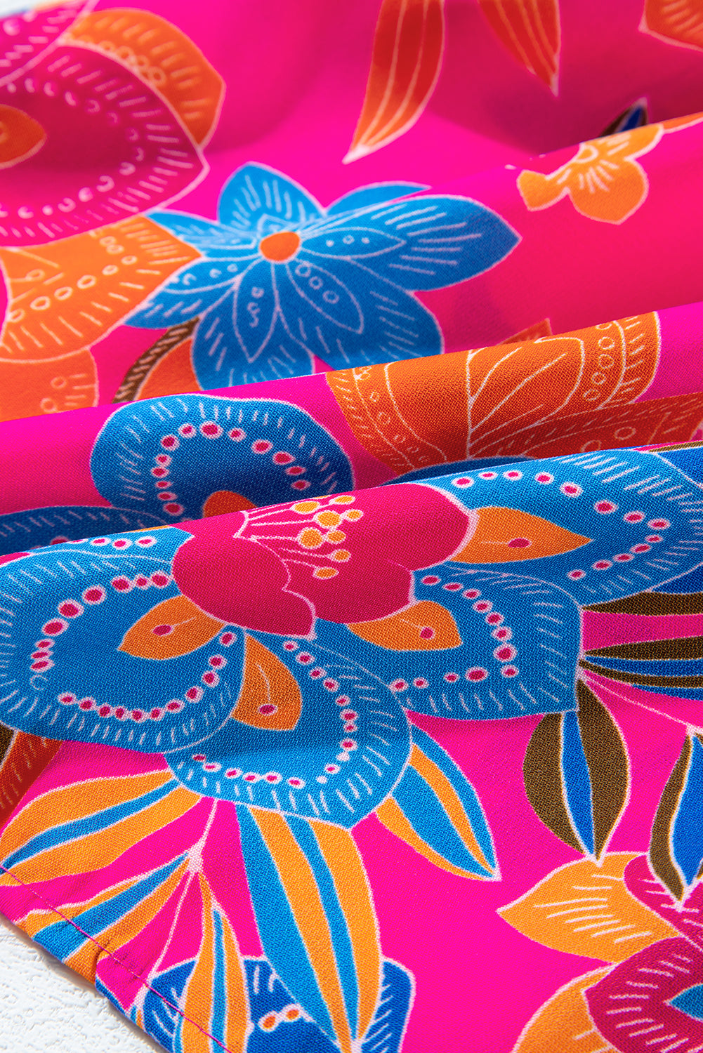 Rose Red Floral Print Smocked Ruffle Trim Flutter Sleeve Blouse | Tops/Blouses & Shirts