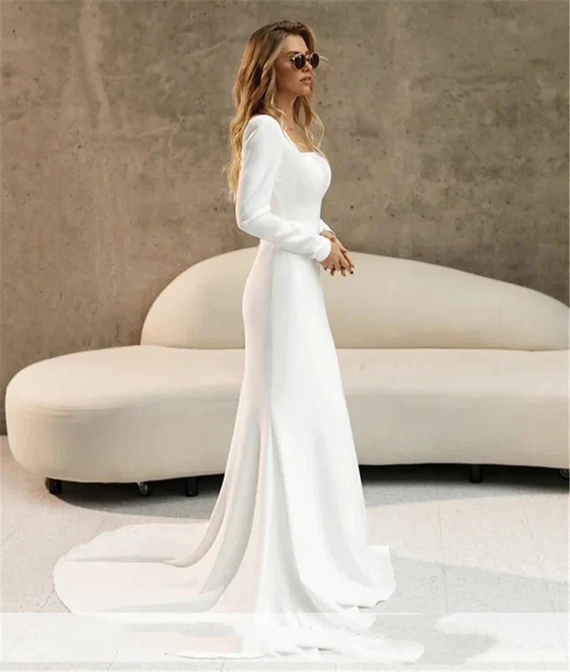 Whether you're walking down the aisle or dancing the night away, our satin mermaid square collar wedding dress is the perfect choice for a bride who wants to make a statement. Embrace your inner princess and create memories that will last a lifetime with this stunning gown.