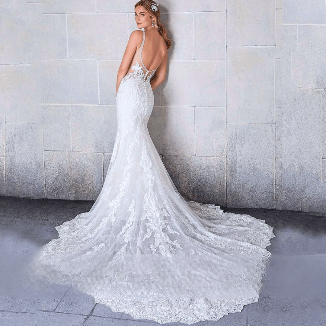 Mermaid Wedding Dress-Sexy Lace Backless Beach Bridal Gown