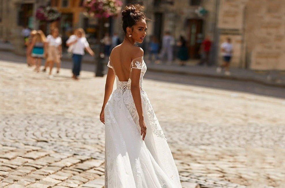 Introducing our exquisite Backless Wedding Dress- Boat Neckline-Boat Neck A-Line Wedding Dress, the epitome of romance and elegance for your dream beach wedding. Prepare to be swept away by its timeless beauty and captivating design.
