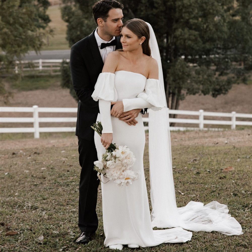 Sheath Wedding Dress-Detachable Long Sleeves Bridal Gown | Wedding Dresses