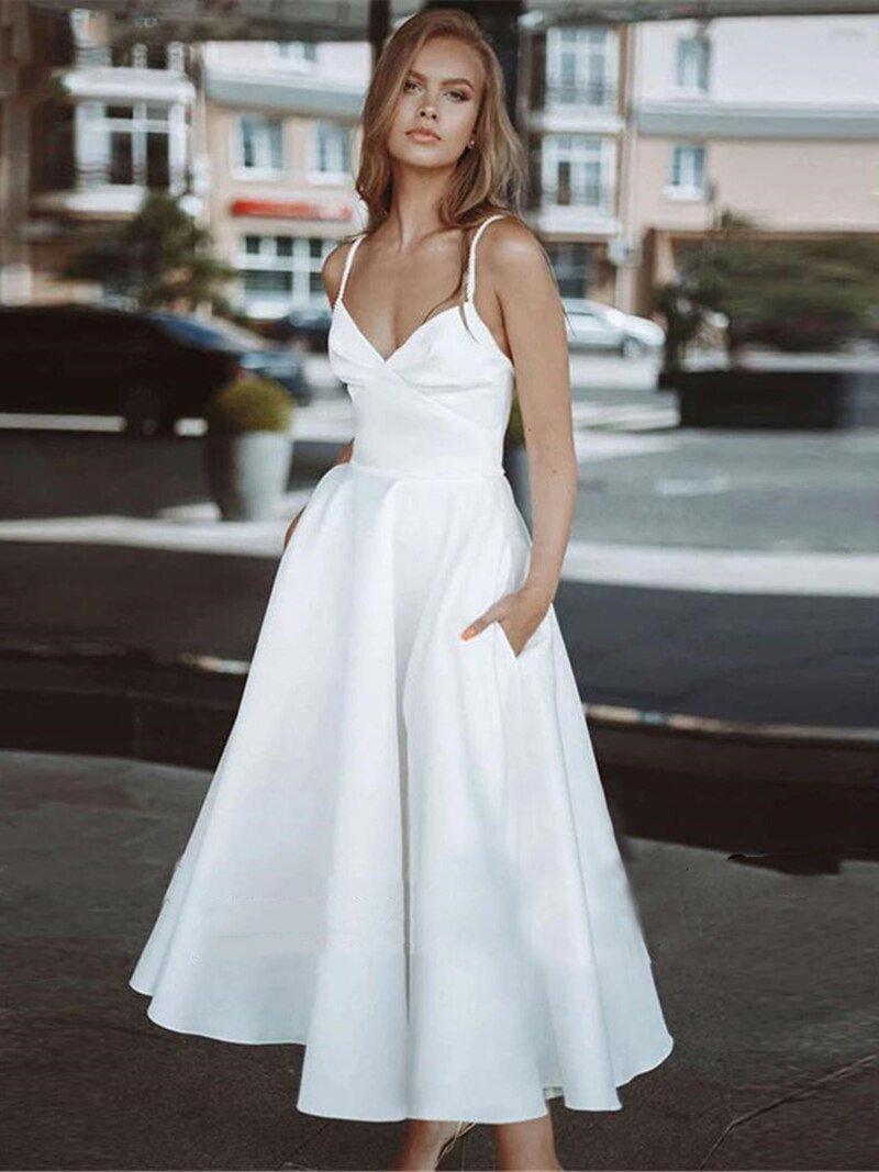 Short Wedding Dress-Simple Ankle-Length Beach Wedding Dress | Wedding & Bridal Party Dresses