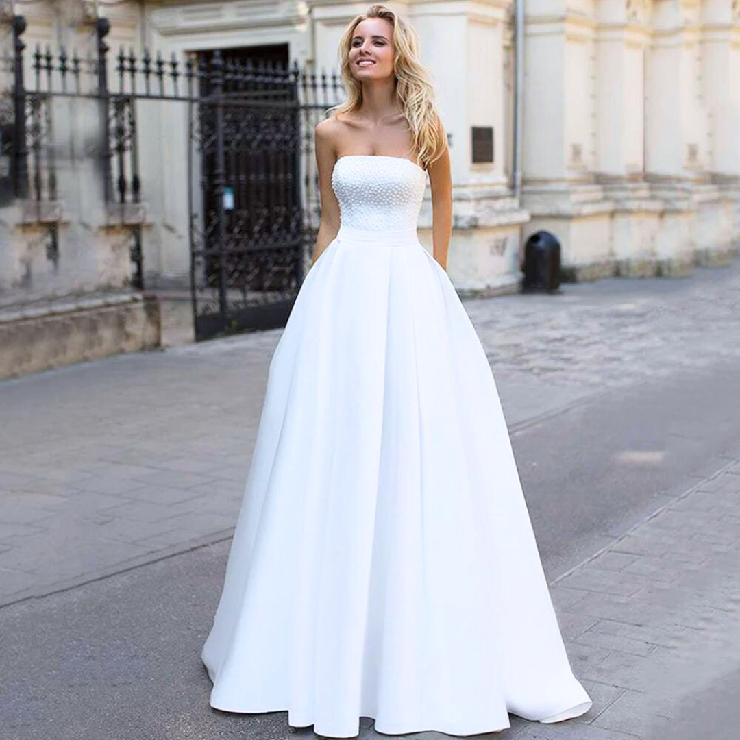 Elegant Simple Strapless Beach Wedding Dress with Belt