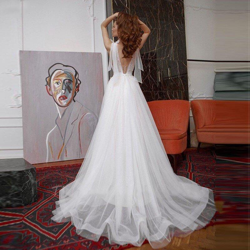 V Neck Wedding Dress-Beaded Tulle Bridal Gown