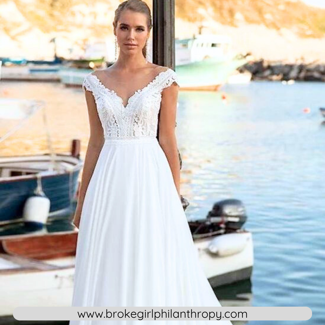 Introducing our exquisite Bohemian Lace Chiffon Beach Wedding Dress, the epitome of romance and elegance.