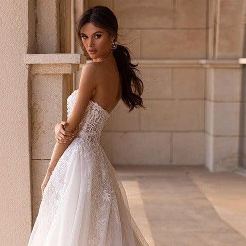 Strapless Lace Wedding Dress | A Line Bridal Gown