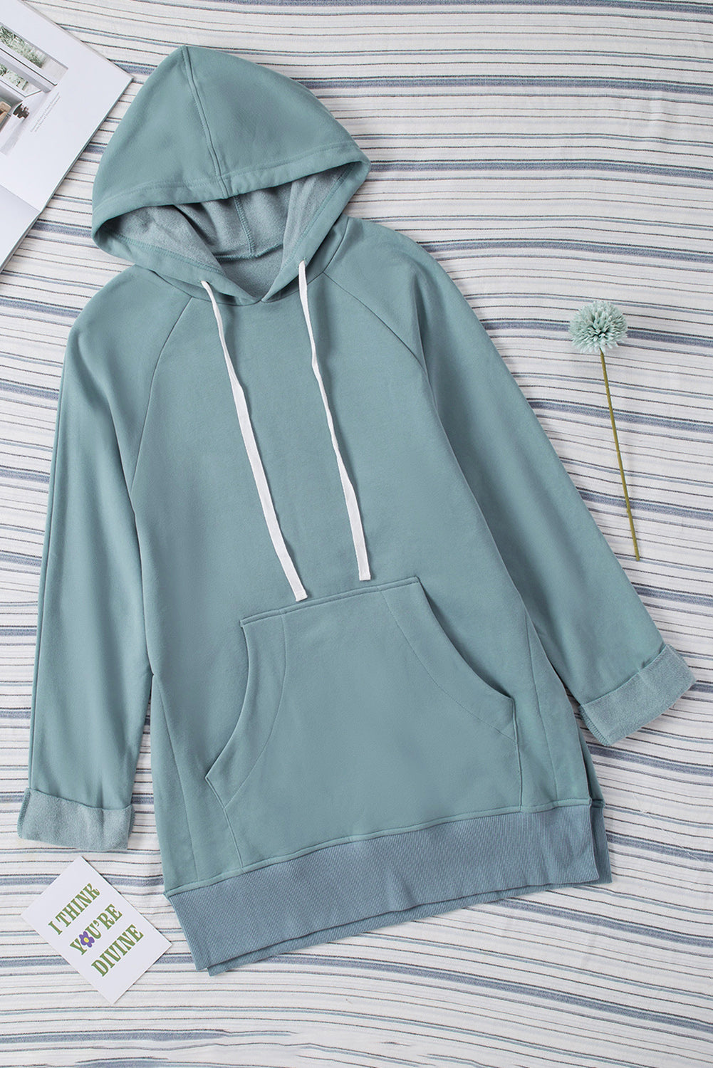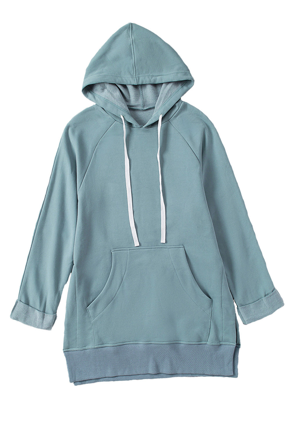 Blue Kangaroo Pocket Oversized Hoodie with Slits
