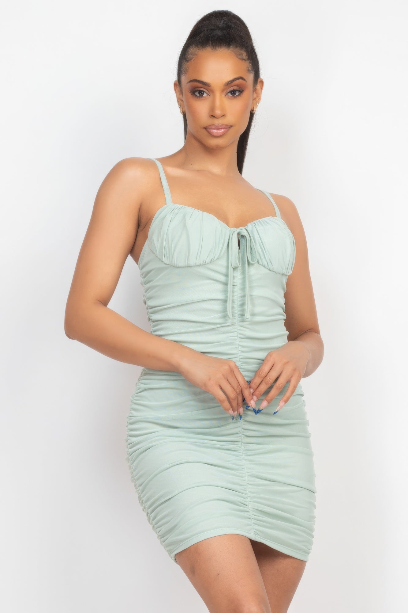 Bodycon Dress-Metal Shade Front Ruched Mini Dress