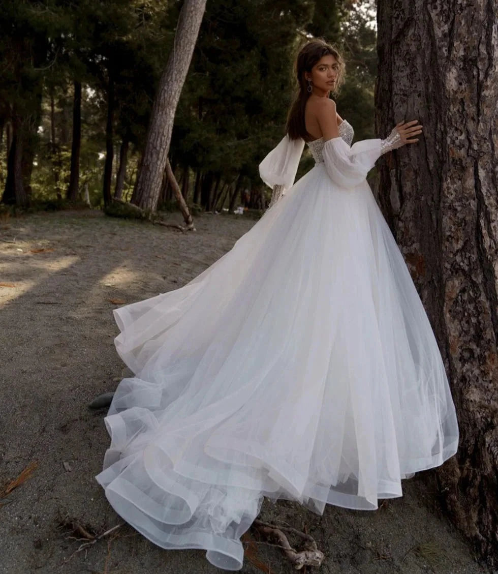Step into a world of enchantment with our Sexy Wedding Dress -Sweetheart Bohemian Princess Bridal Gown with Detachable Sleeves