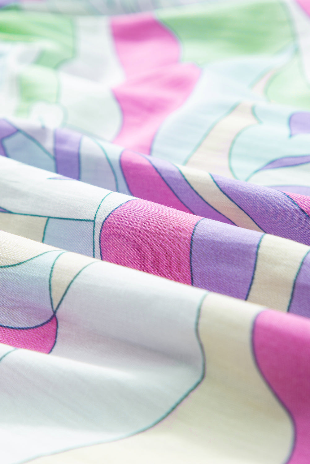 Bubble Sleeve Top | Green Abstract Smock Detail Blouse
