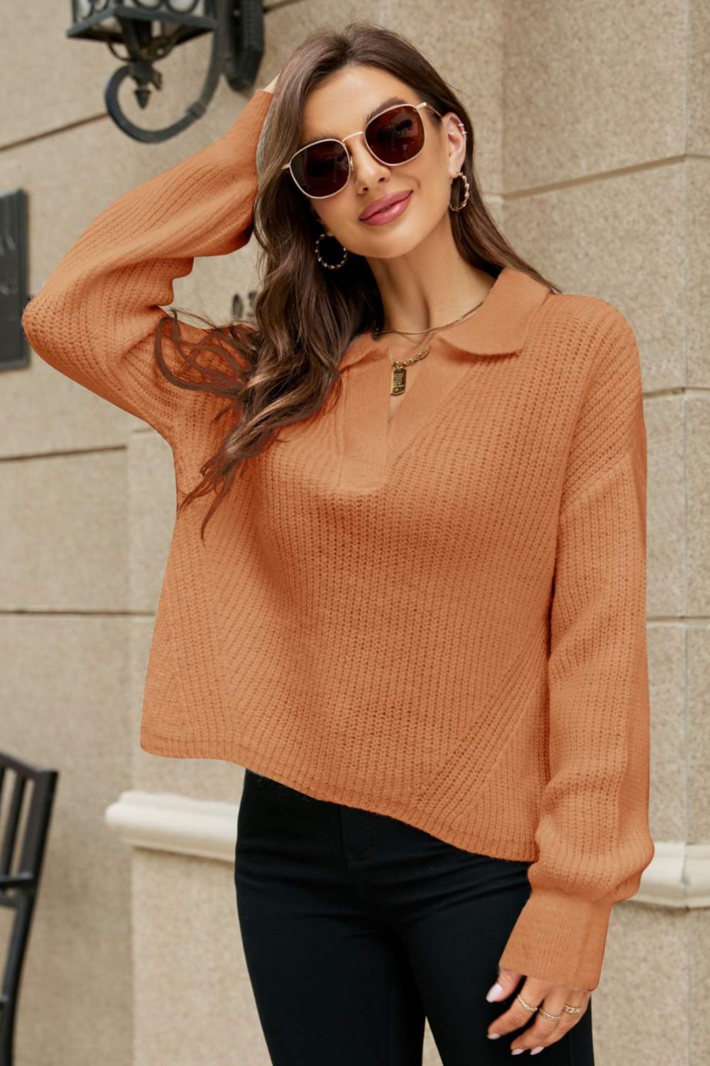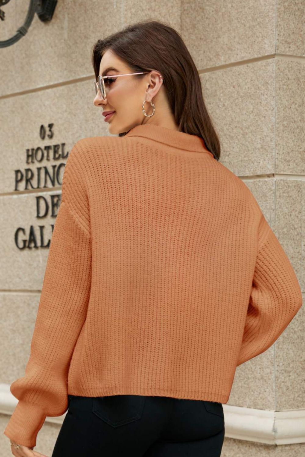 Womens Sweater-Johnny Collar Lantern Sleeve Sweater