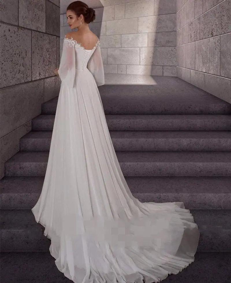 Crafted with the utmost care from luxurious chiffon, this beautiful gown features long sleeves and a stunning silhouette for a truly elegant and tasteful look.