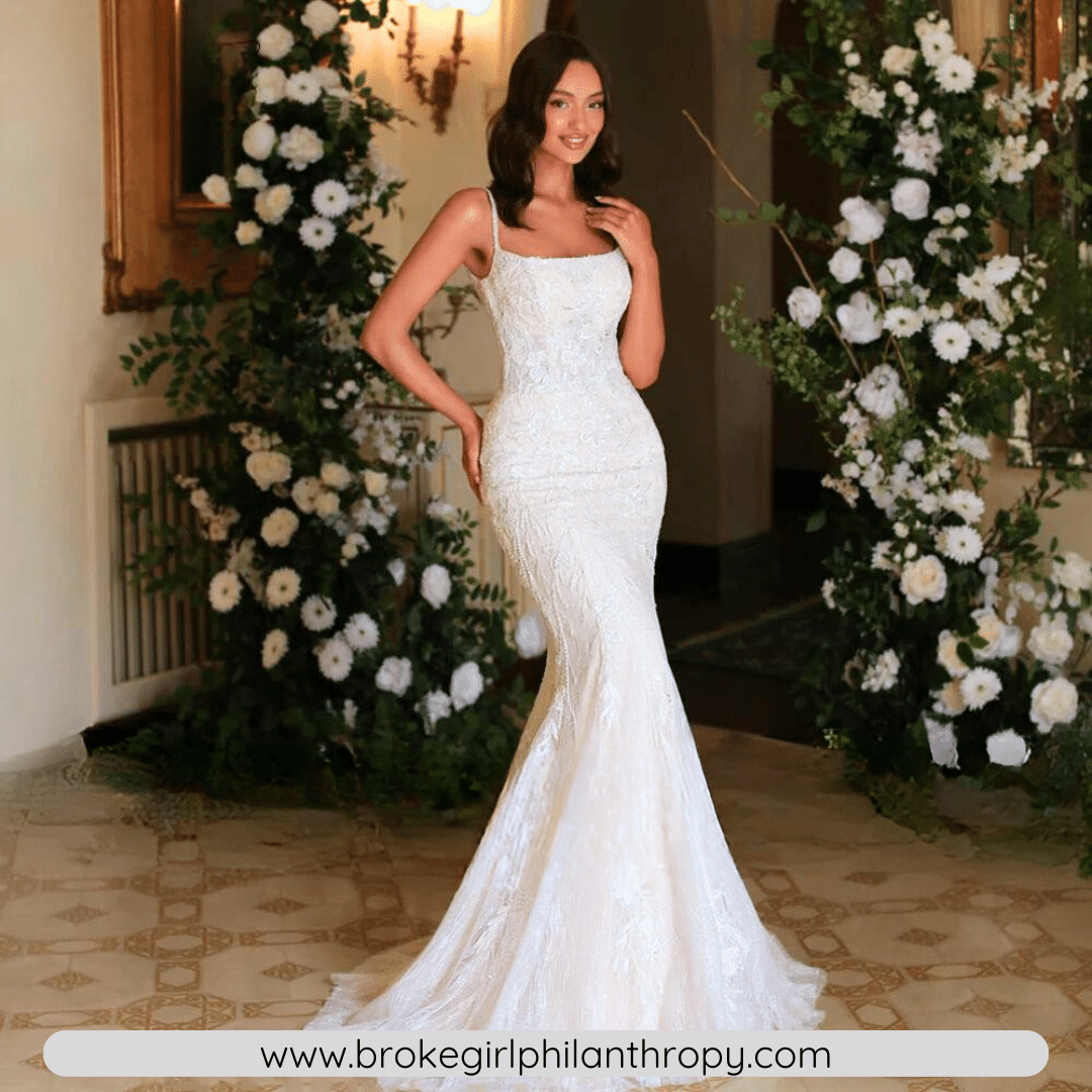 Be effortlessly enchanting on your special day with this Mermaid Wedding Dress, featuring a luxurious detachable train. Dive into the perfect balance of elegance and whimsy with this dress, perfect for any mermaid bride.