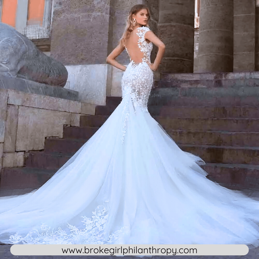 • The mermaid/trumpet silhouette effortlessly accentuates the bride's curves, creating a breathtaking hourglass figure that will make her feel confident and glamorous as she walks down the aisle.