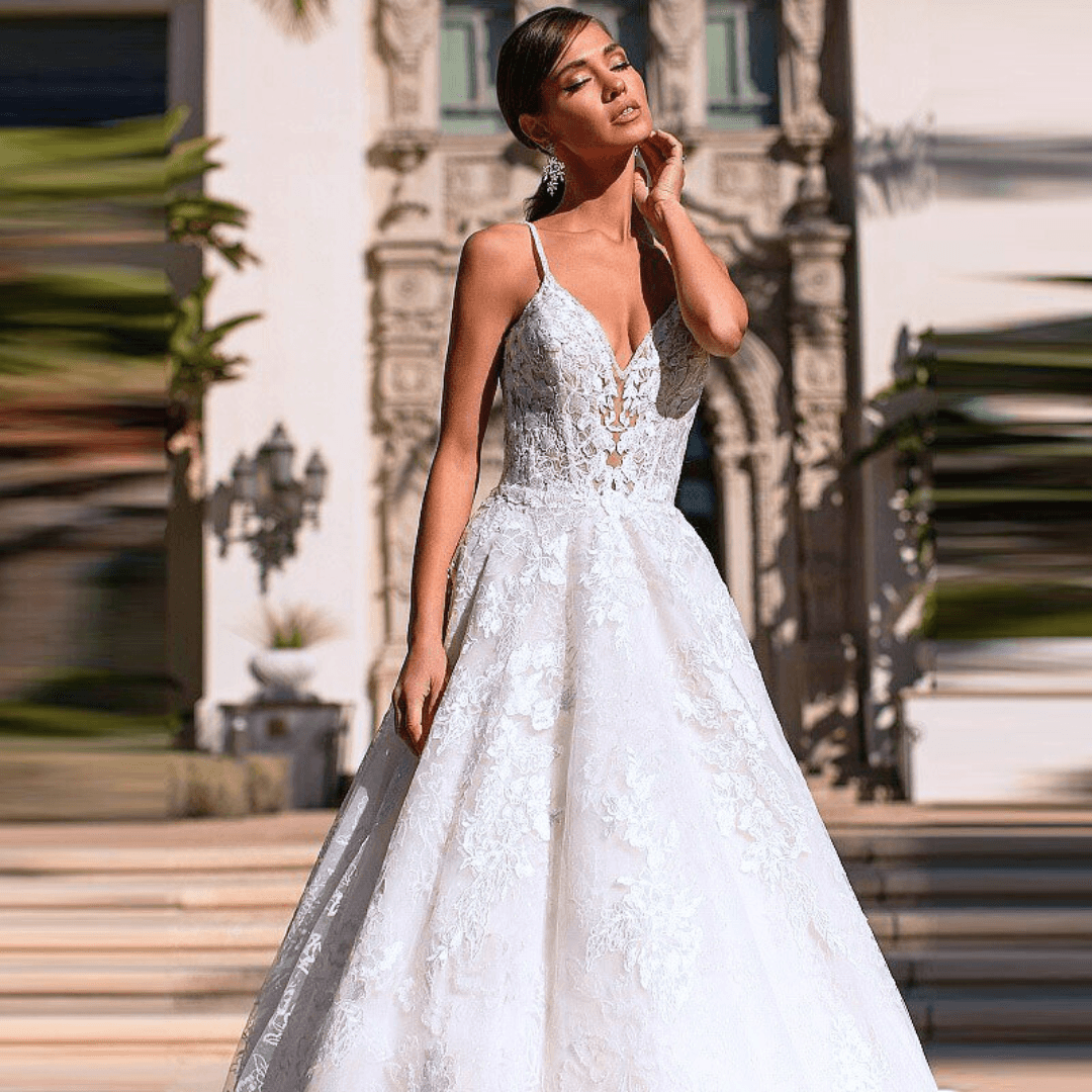 • Our A-line silhouette creates a flattering shape, making our beach wedding gown both comfortable and stylish