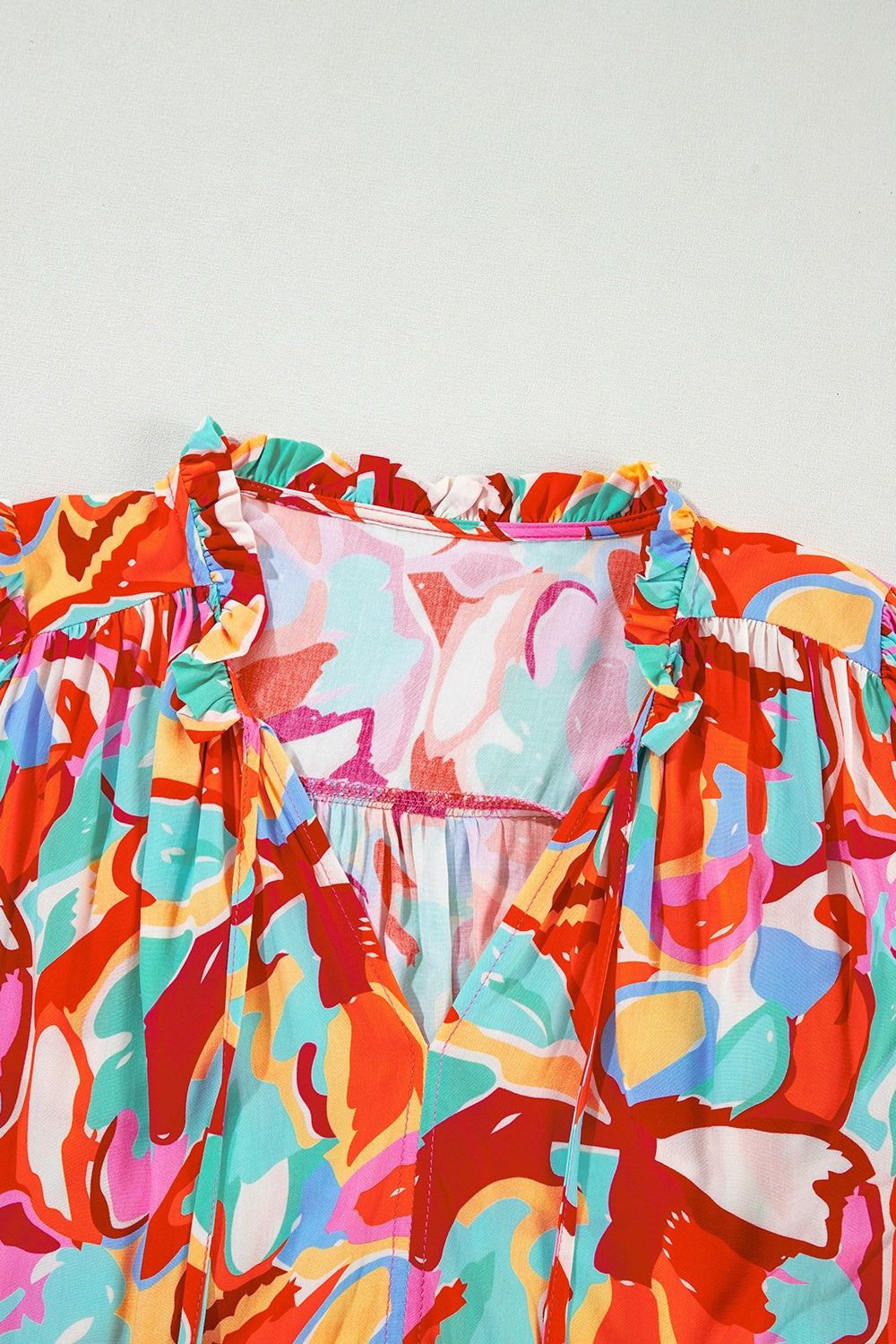 • Load image into Gallery viewer, Printed Blouse | Tie Neck Half Sleeve Top