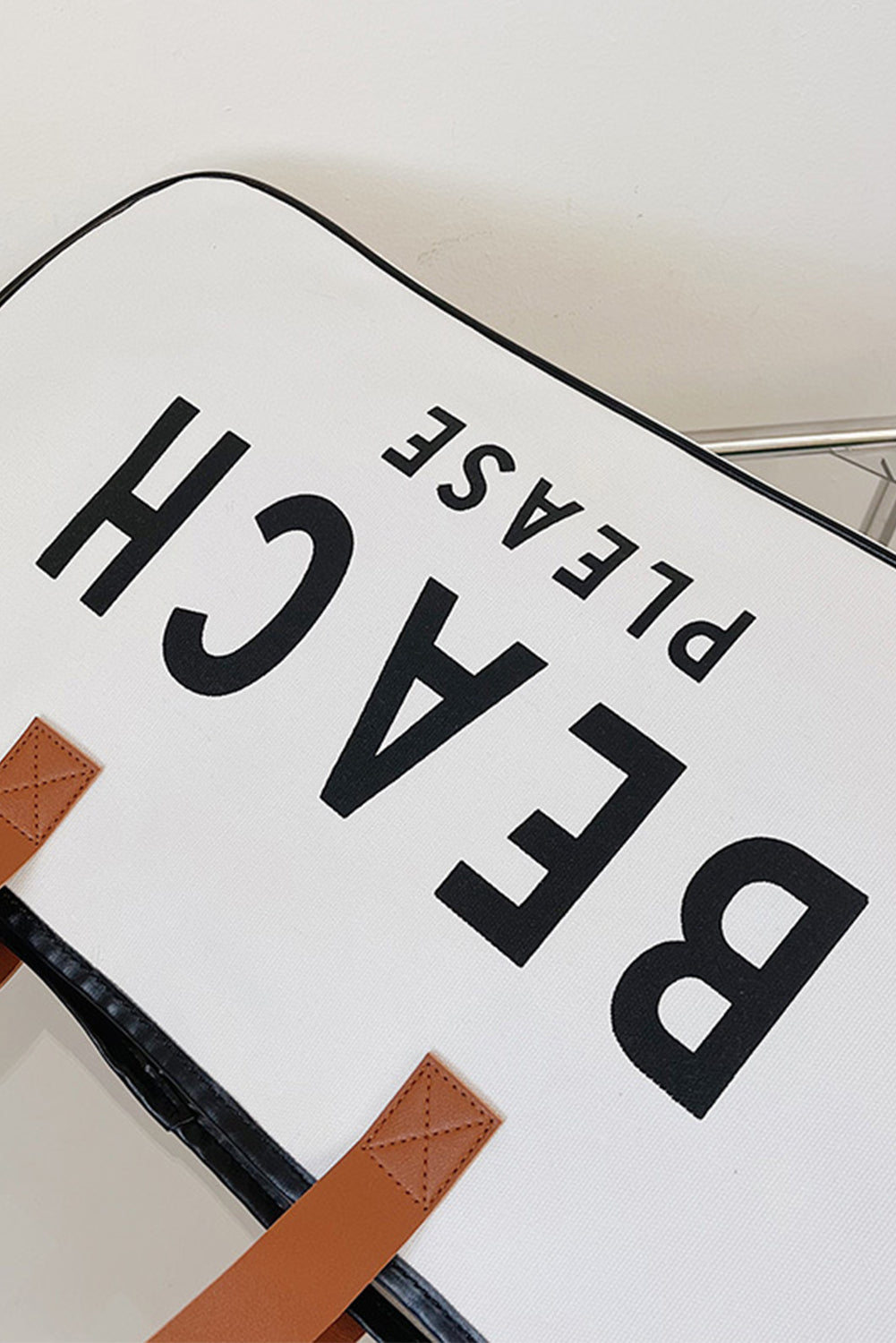 White BEACH PLEASE Print Large Canvas Tote Bag | Shoes & Bags/Handbags