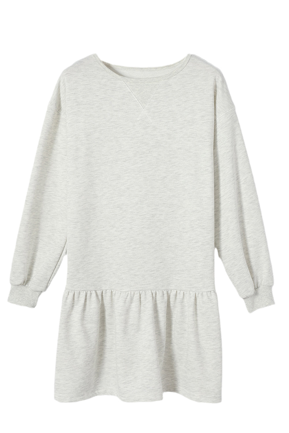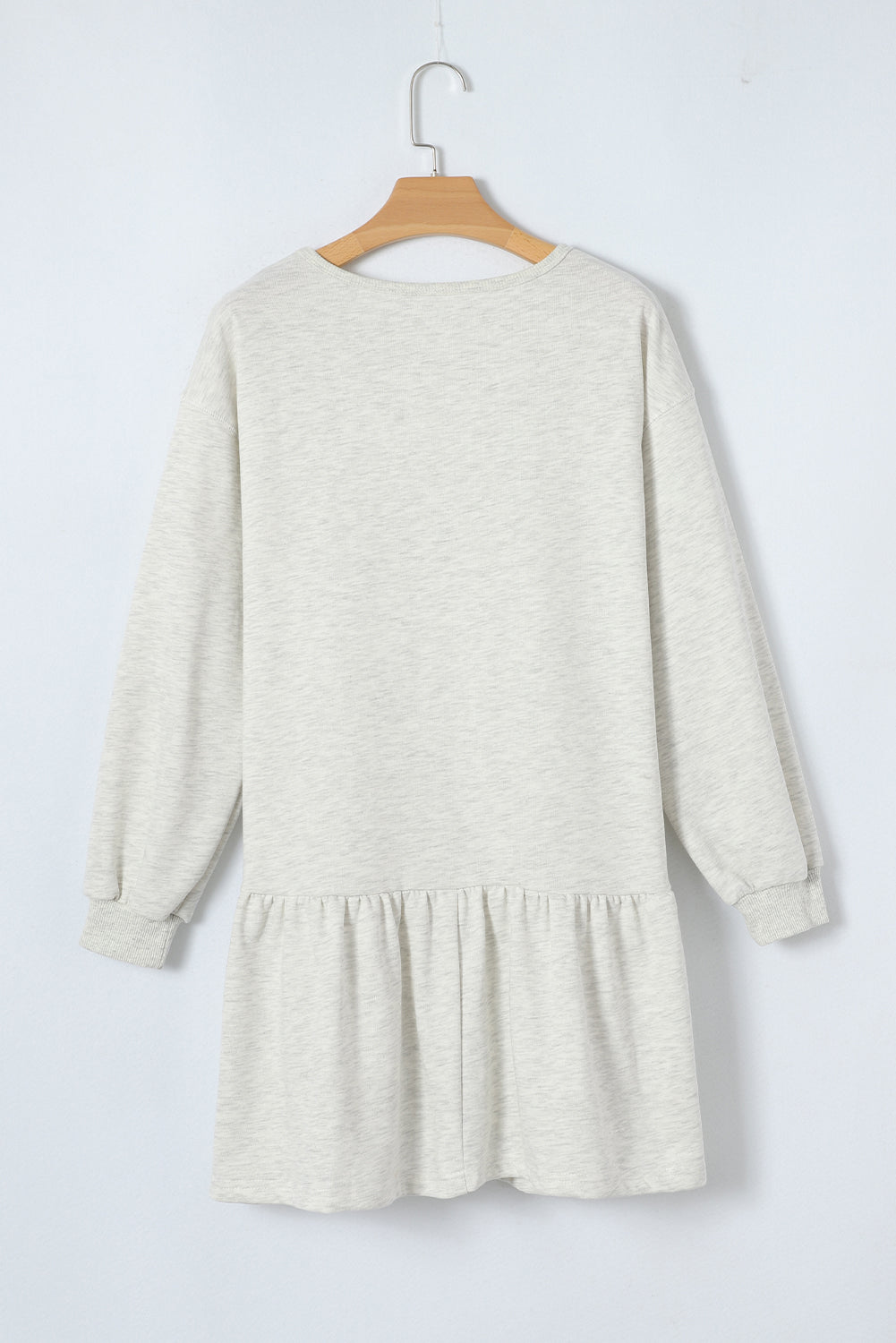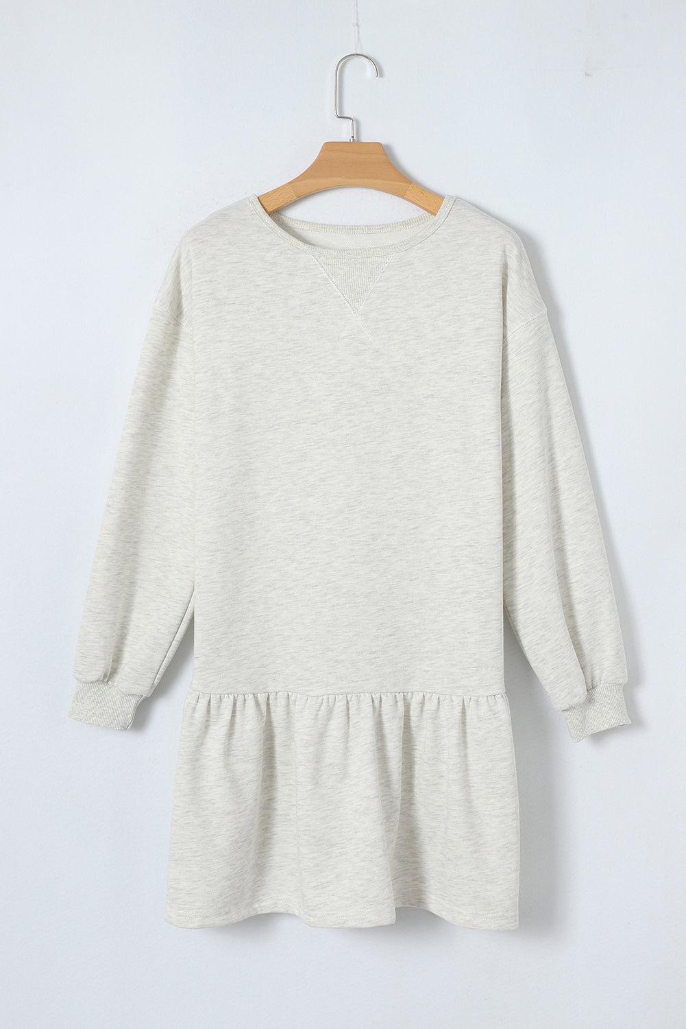 White Solid Color Puff Sleeve Ruffle Hem Mini Dress