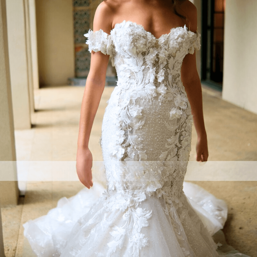 Mermaid Wedding Dress-Flower Lace Applique Mermaid Bridal Gown | Wedding Dresses
