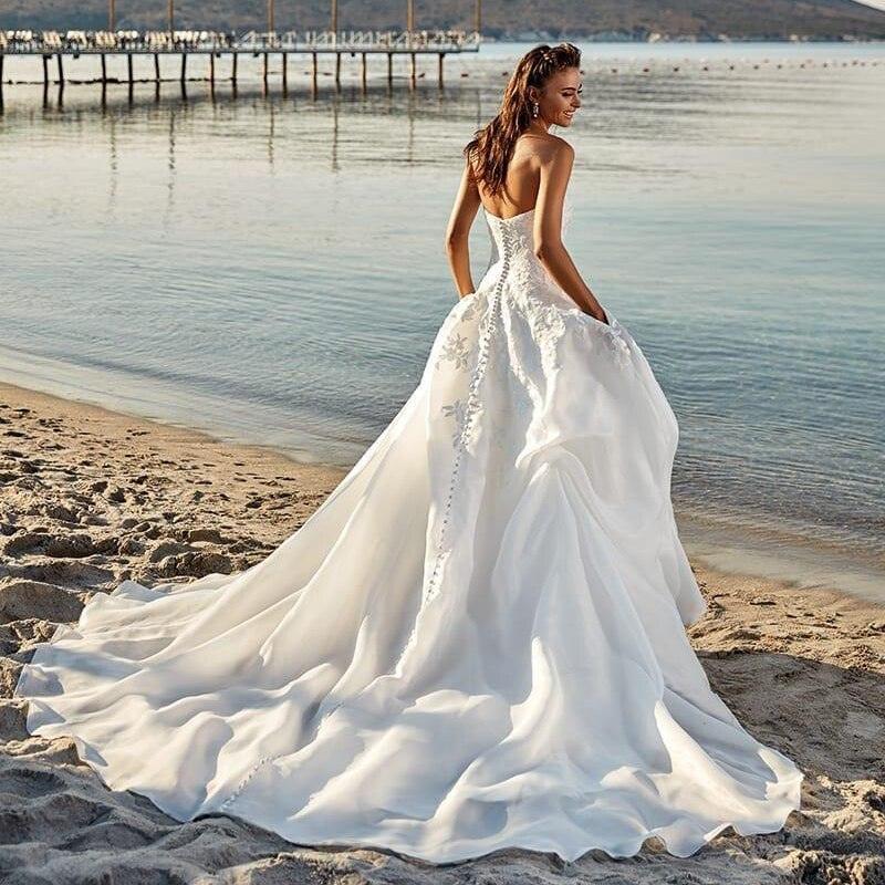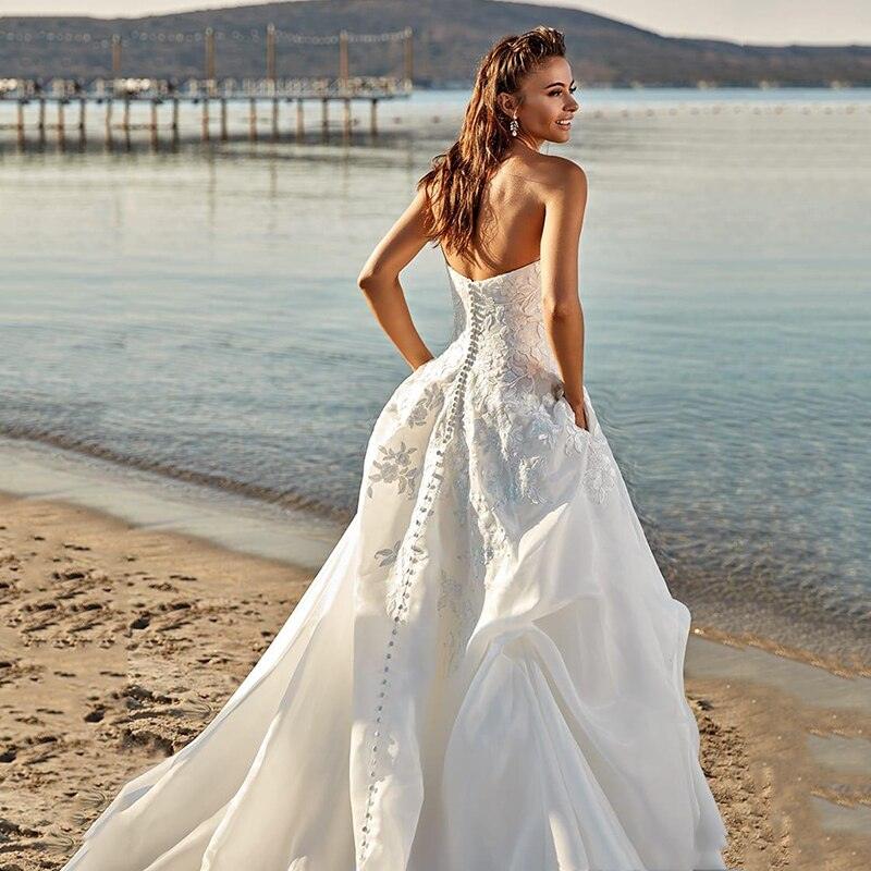 Fall in love with the ethereal beauty of our Princess Sweetheart Beach Wedding Dress with Pockets.
