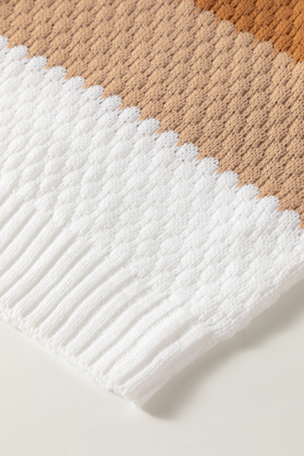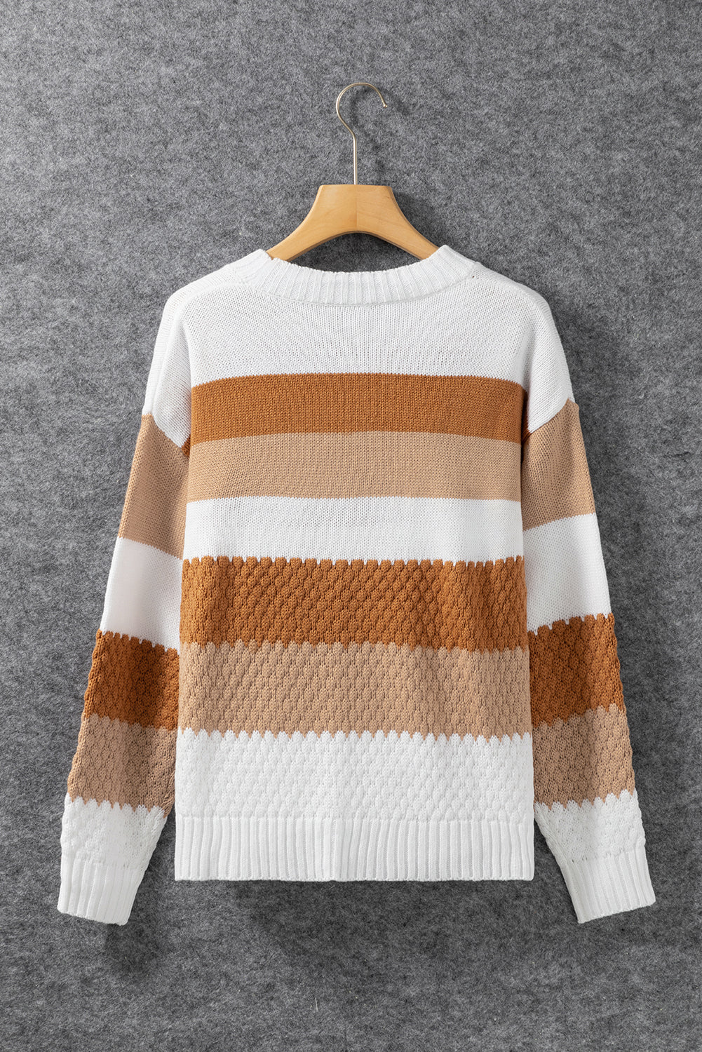 Chestnut Striped Cable Knit Drop Shoulder Sweater