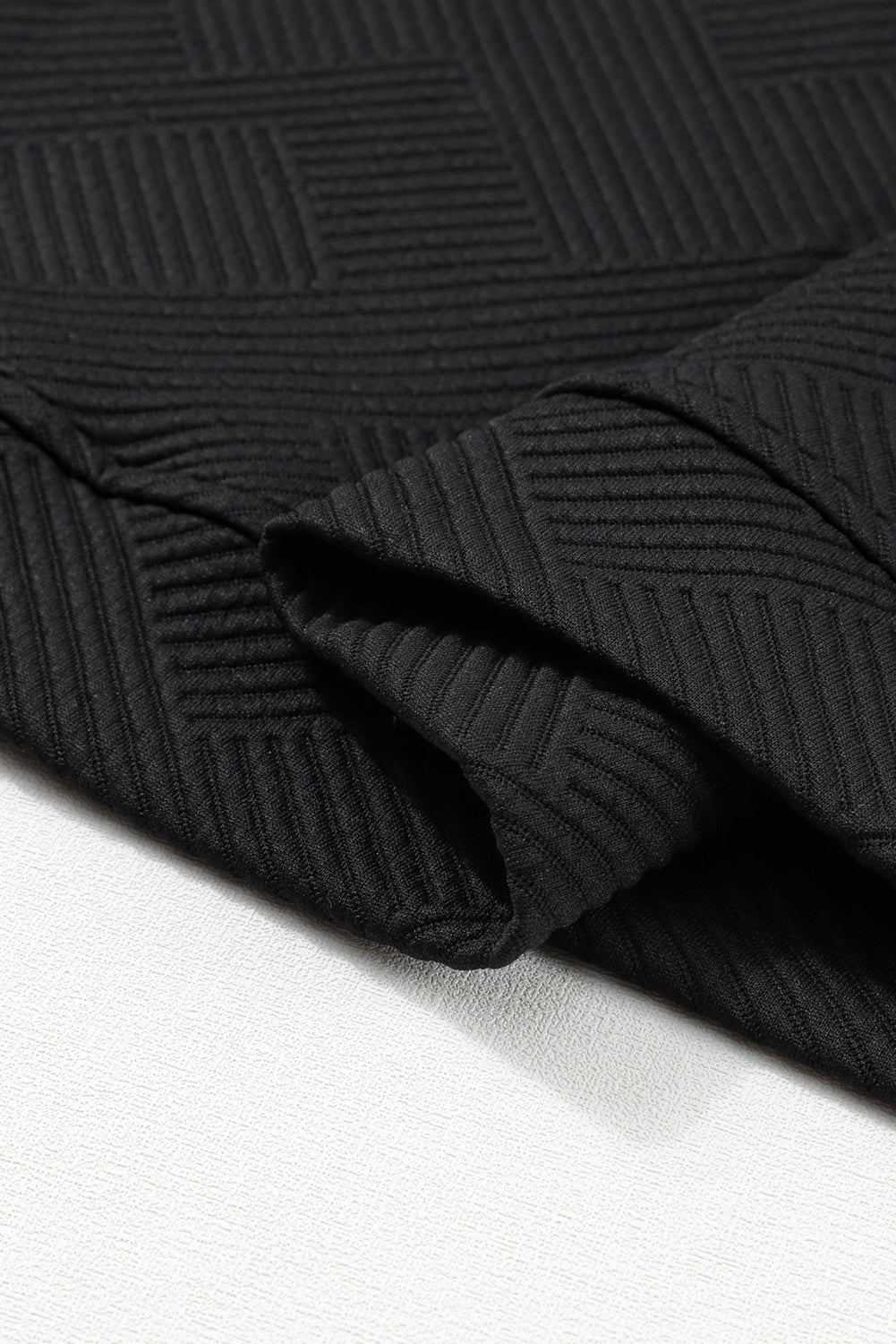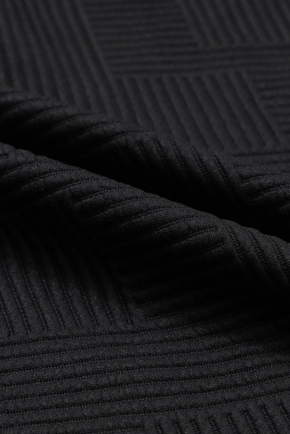 Drawstring Shorts Set | Black Textured Long Sleeve Top Shorts