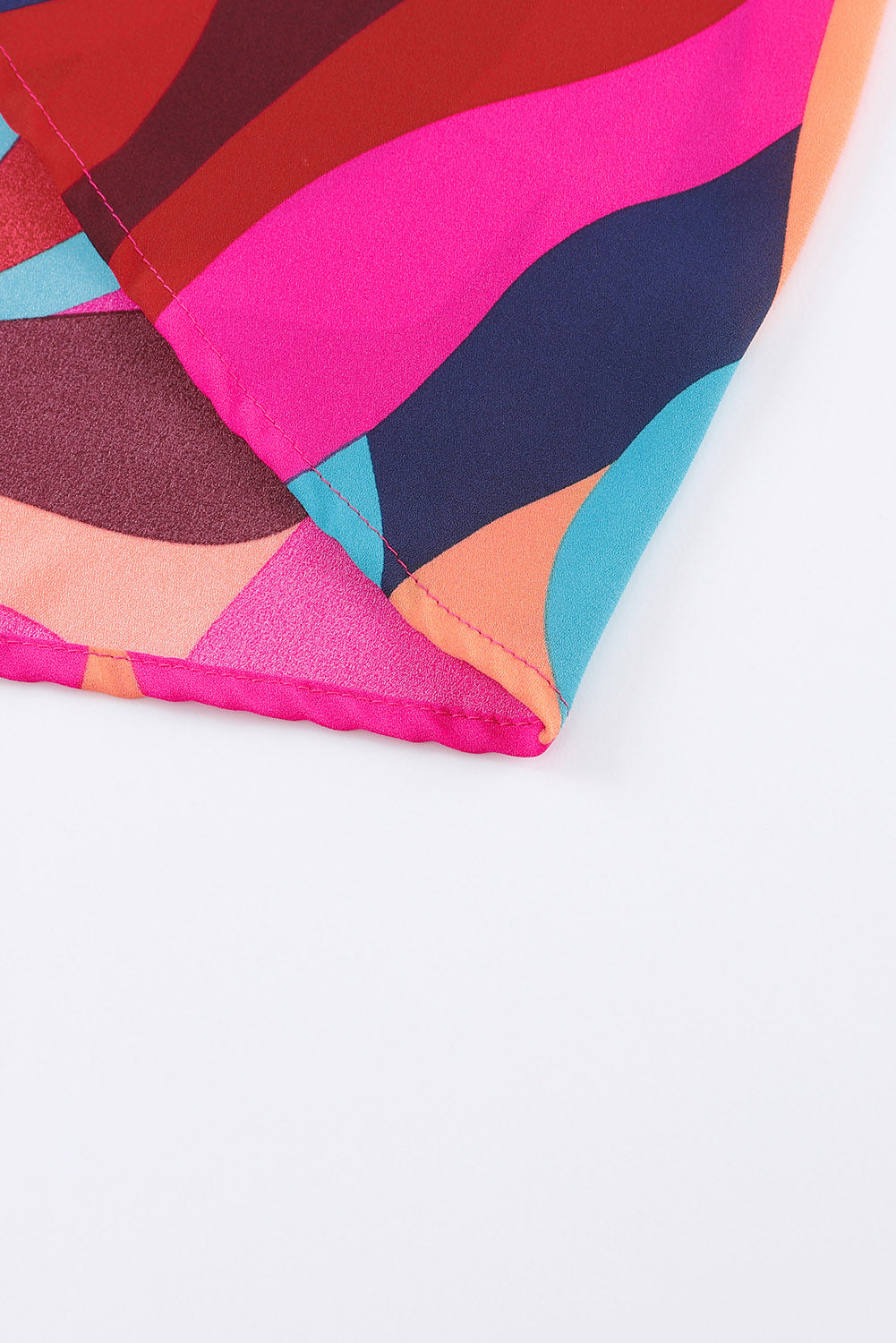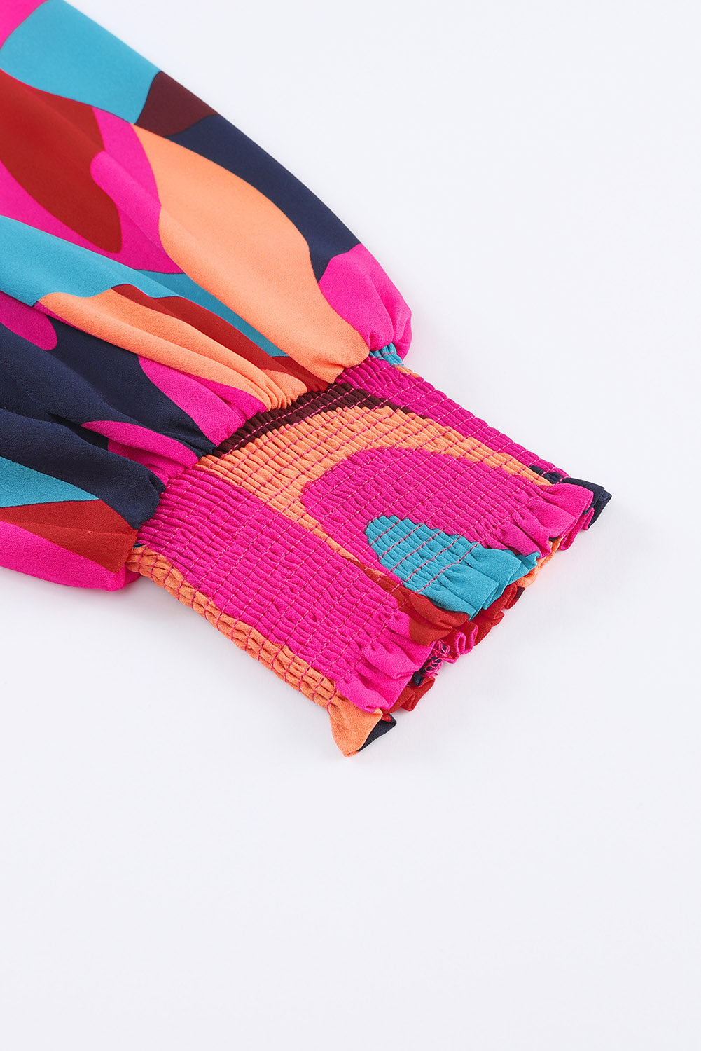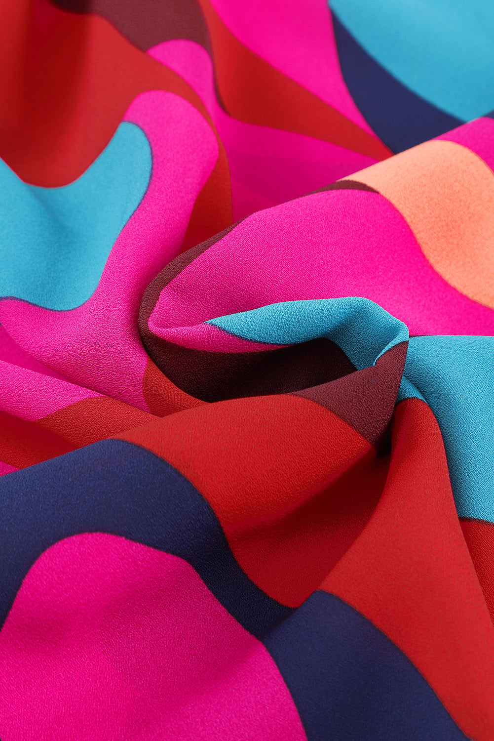 Fiery Red Abstract Printed Belted Puff Sleeve Mini Dress