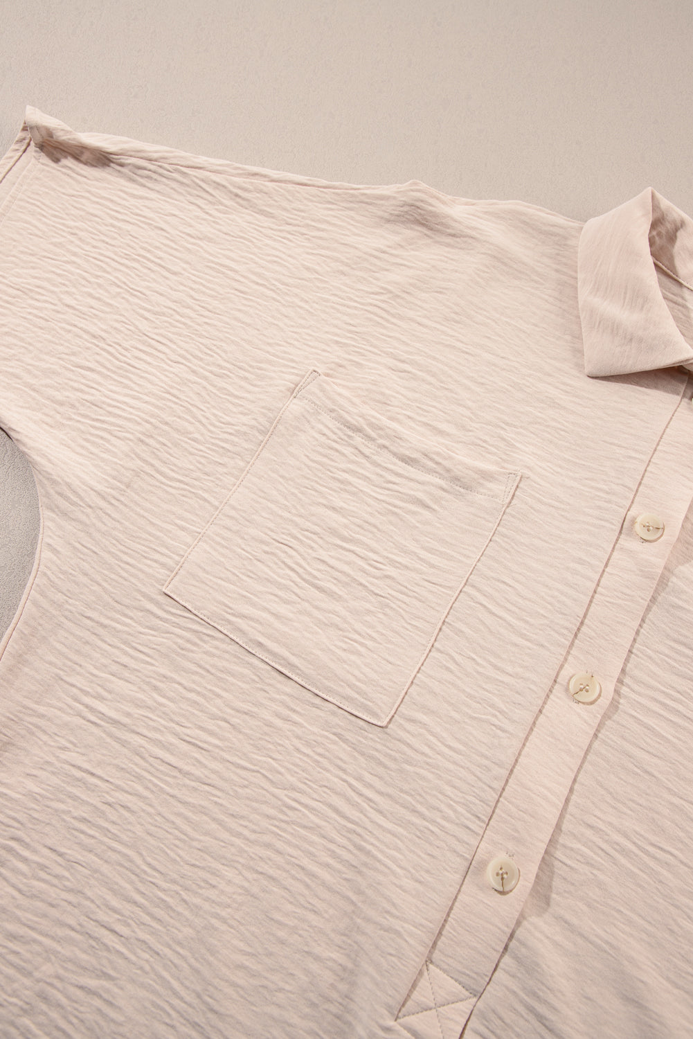 • It has button closures, turn-down collar, and short sleeves