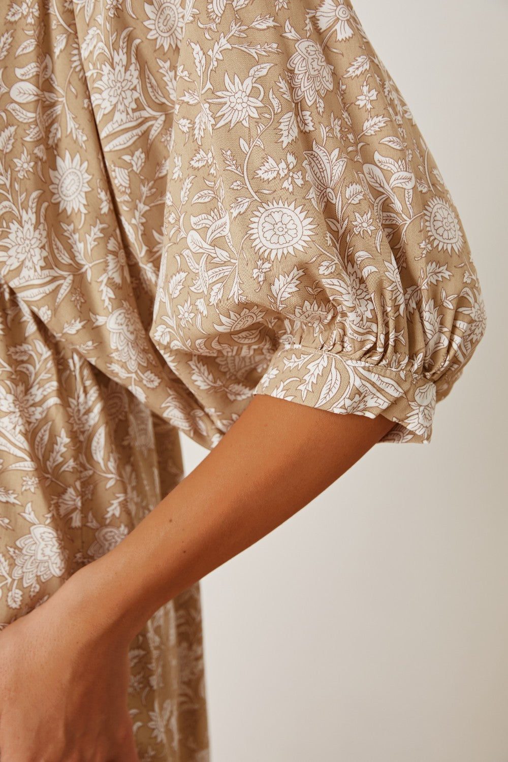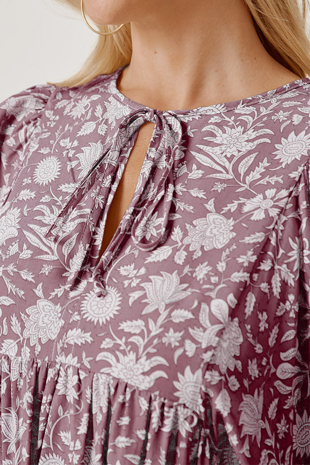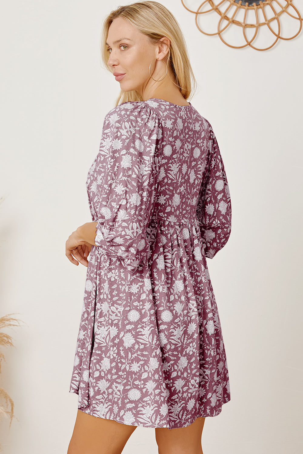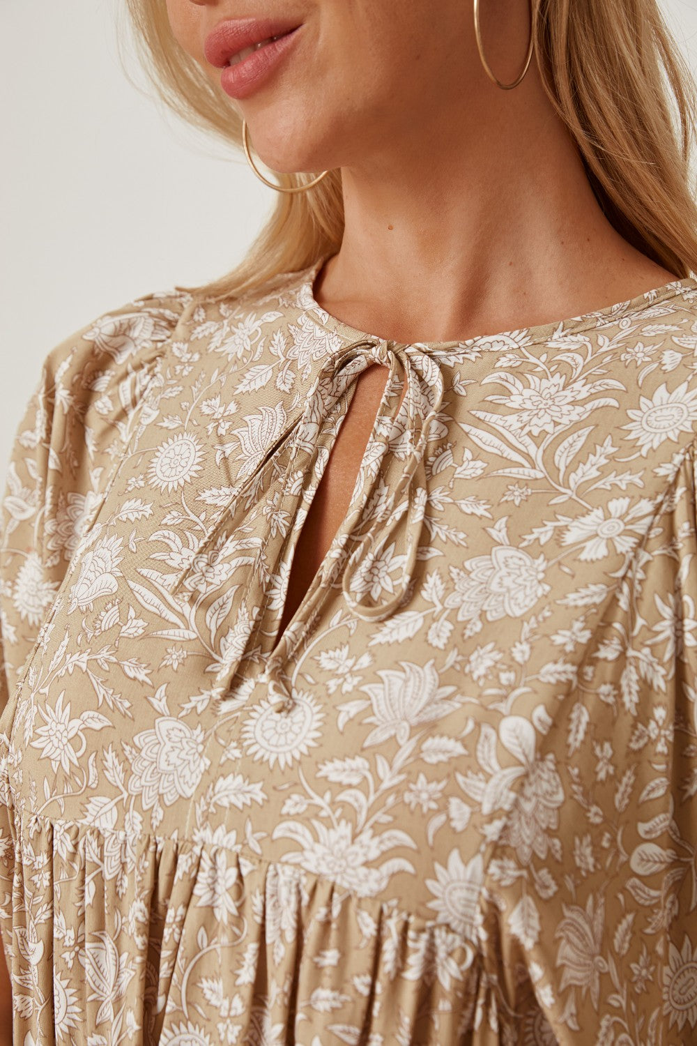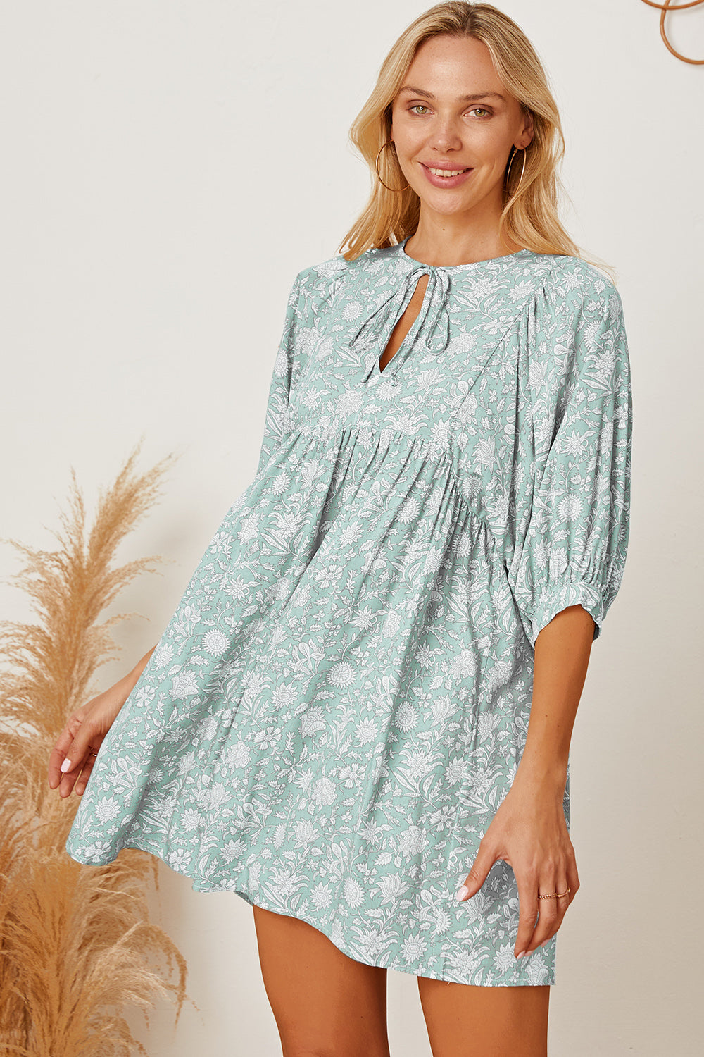 Babydoll Dress | Floral Tie Neck Ruched Dress