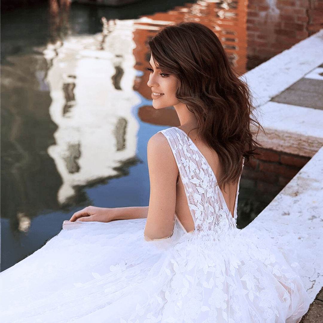 šŸ‘° Picture yourself in this stunning dress, featuring delicate appliques and intricate lace details that exude elegance and sophistication. The A-Line silhouette flatters every curve, while the floor-length design adds a touch of glamour to your special day. The backless feature adds a modern twist, ensuring all eyes are on you as you walk down the aisle. ✨