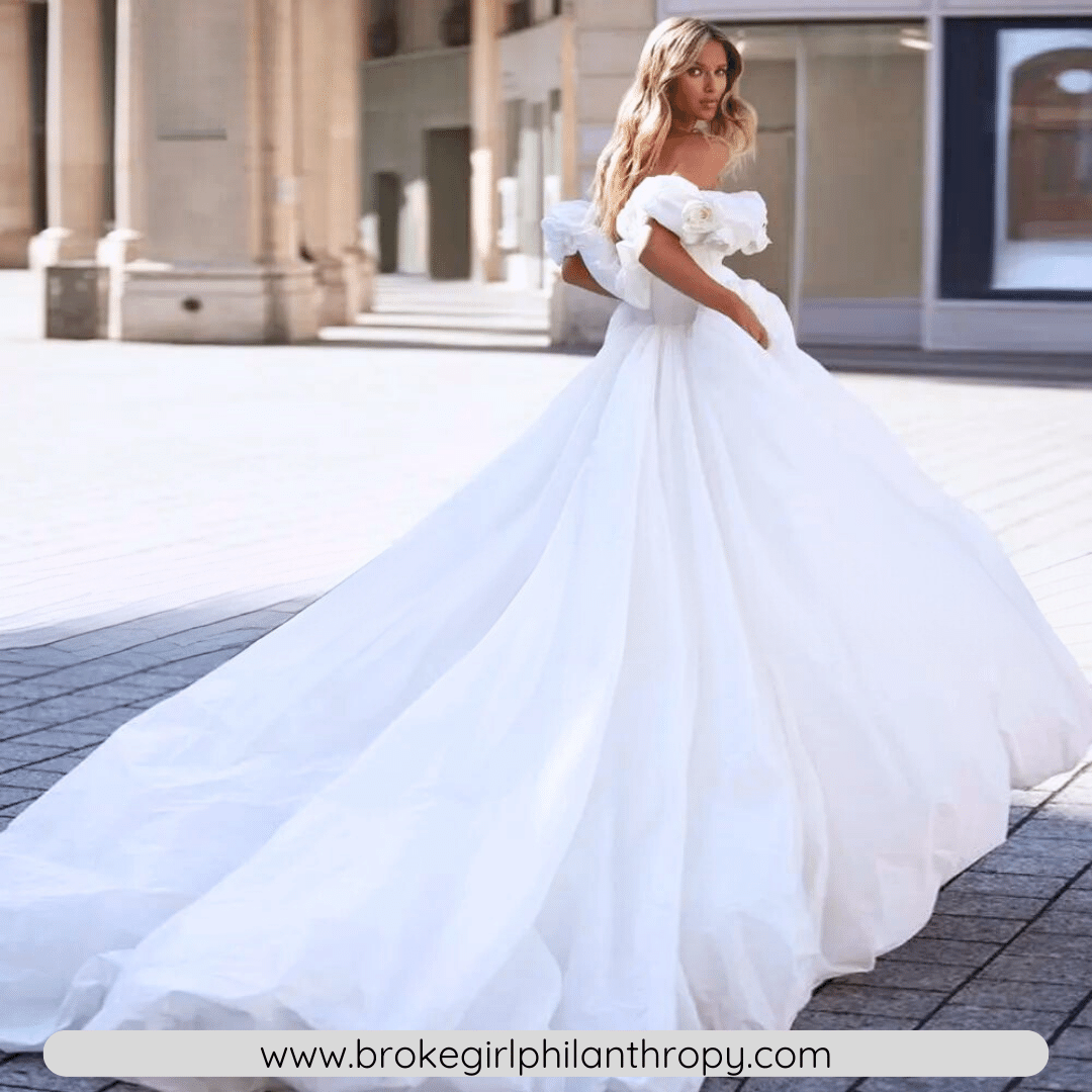 Be the belle of the ball in this stunning wedding dress, featuring a sweetheart neckline and a puffy skirt. Perfect for the playful bride who wants to make a statement on her special day. You'll feel like a princess in this dreamy ball gown!