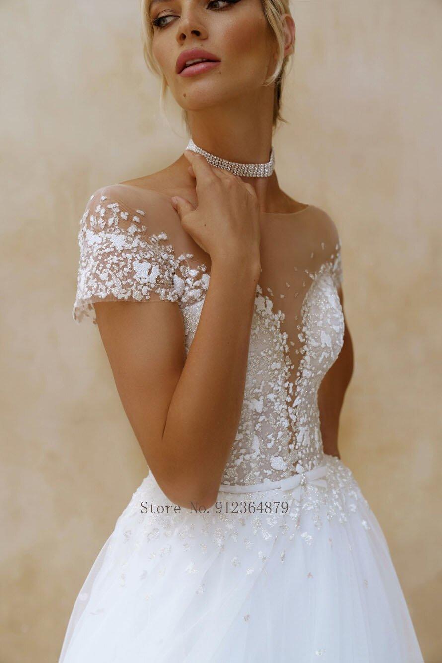 Short Sleeve Wedding Dress-Bohemian A-Line Beach Wedding Dress